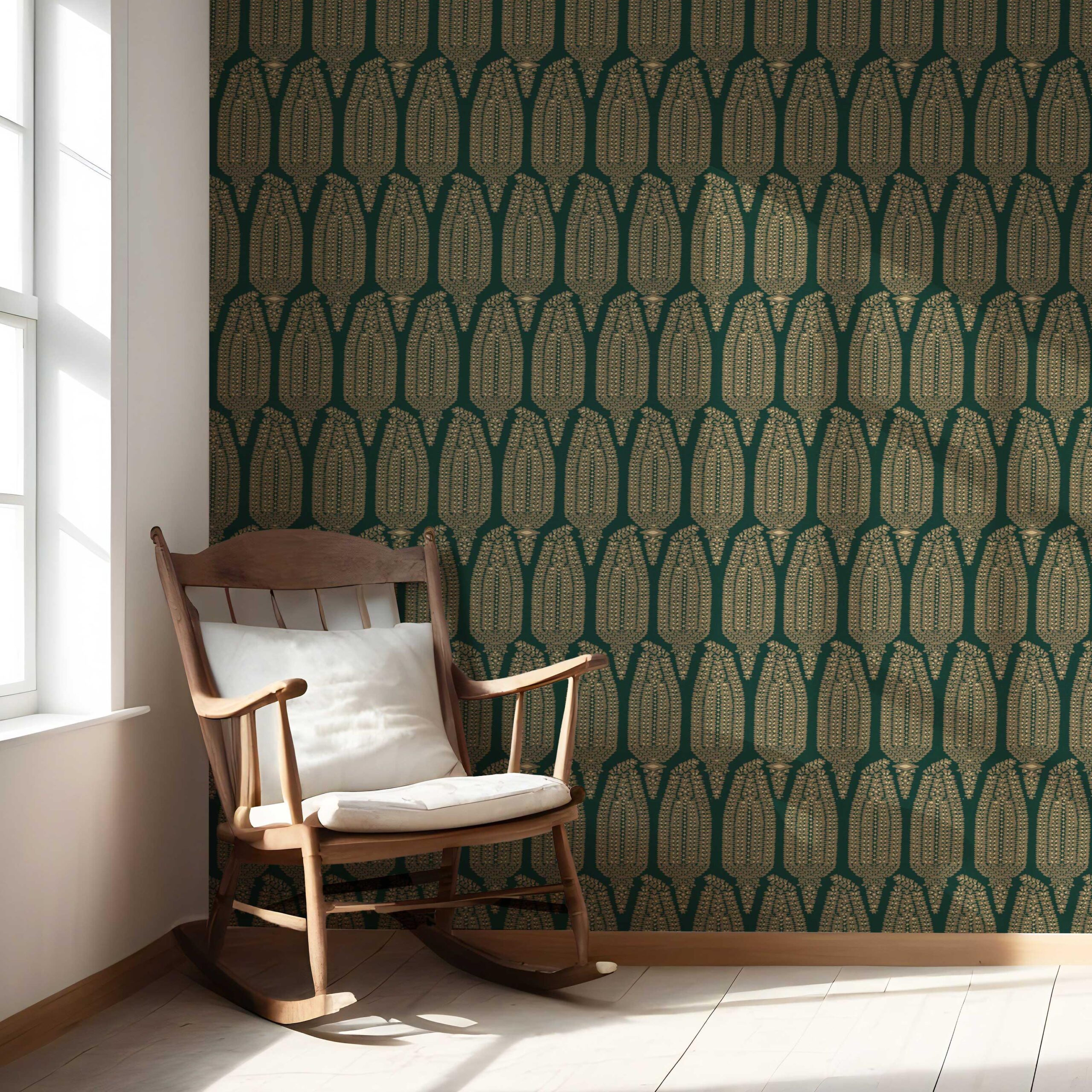 ‘Konkan’ Paisley Floral Wallpaper (Green/ Gold)