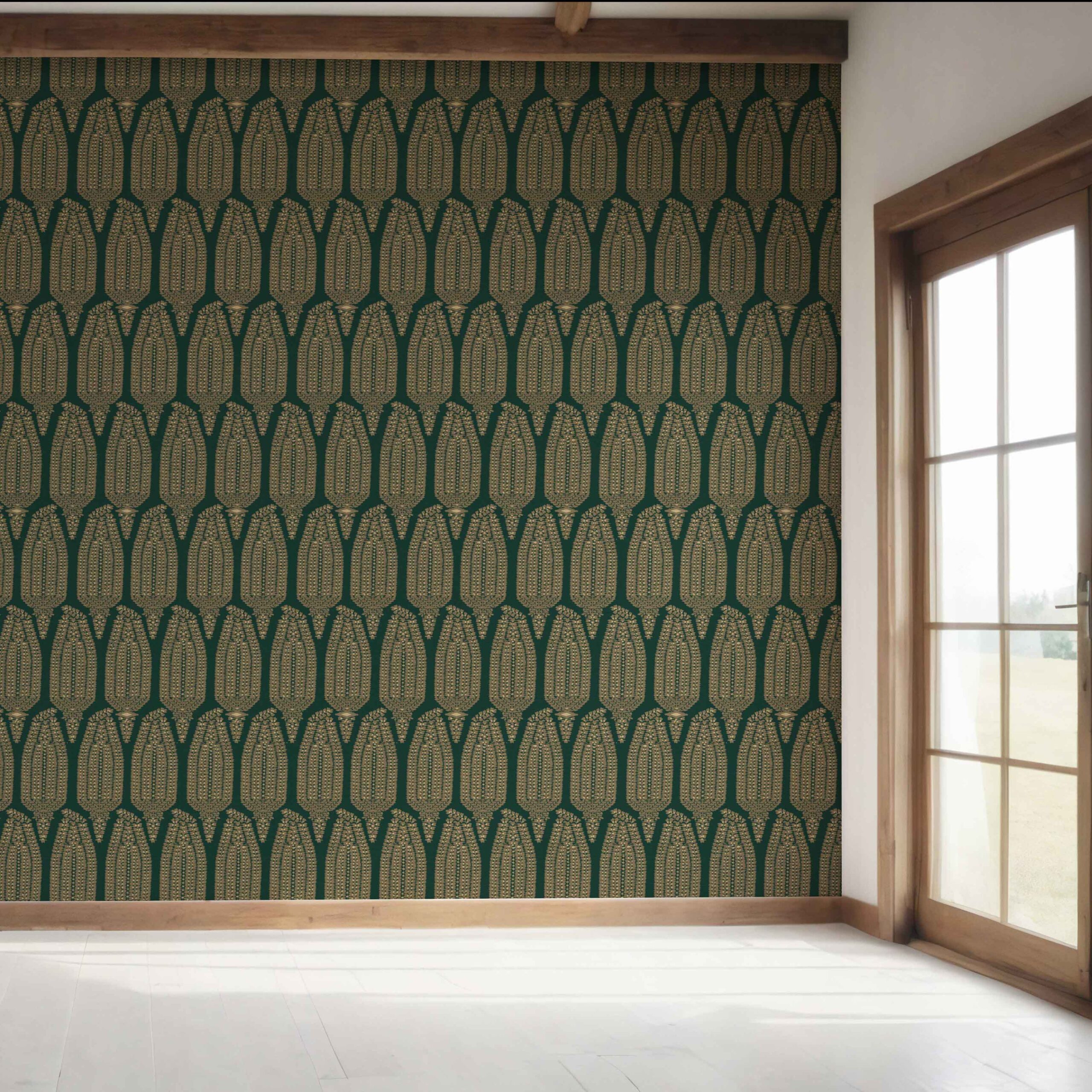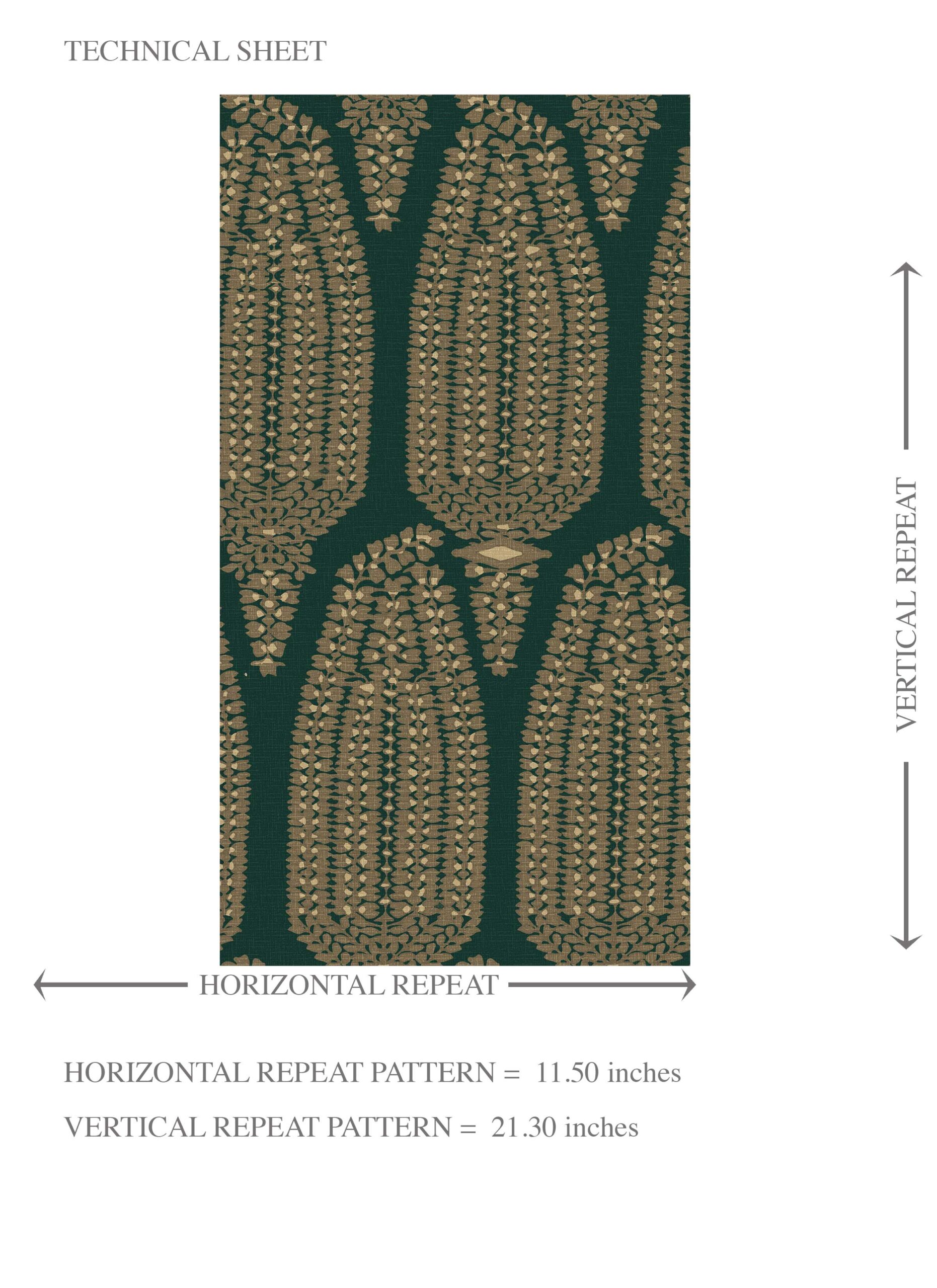 NON-PASTED: ‘Konkan’ is an unpasted wallpaper installed by applying adhesive paste (not provided by us, but easy to source) to the wall. While peel-and-stick papers do not leave much room to change the paper’s position once you start applying it, the traditional, non-pasted application is more forgiving, allowing for better positioning when matching patterns.