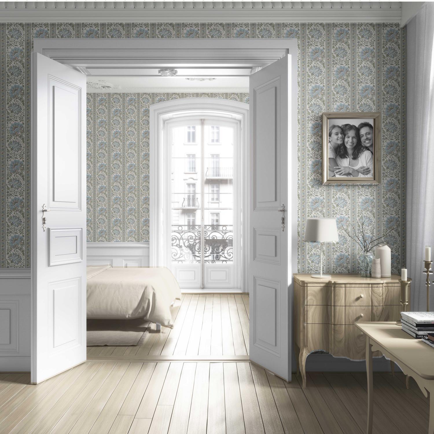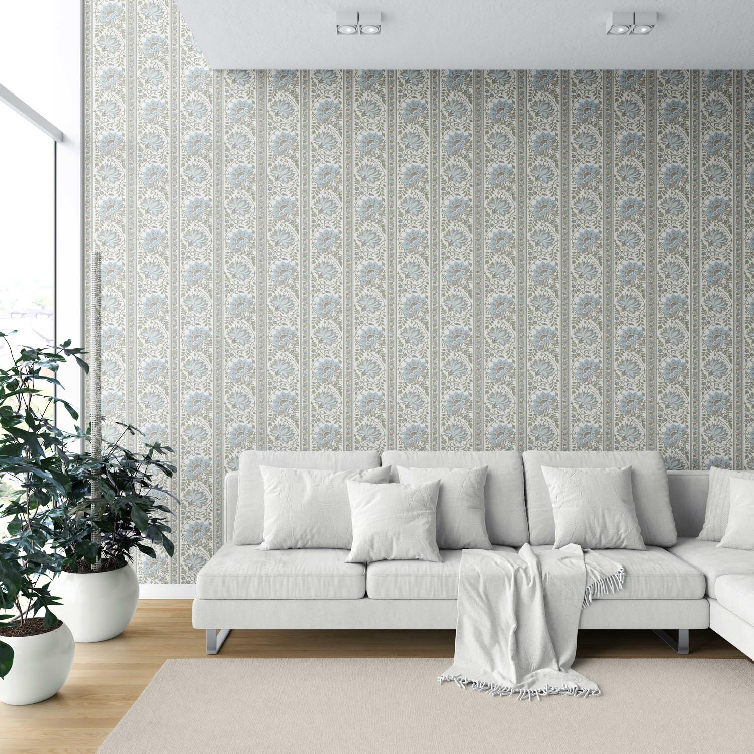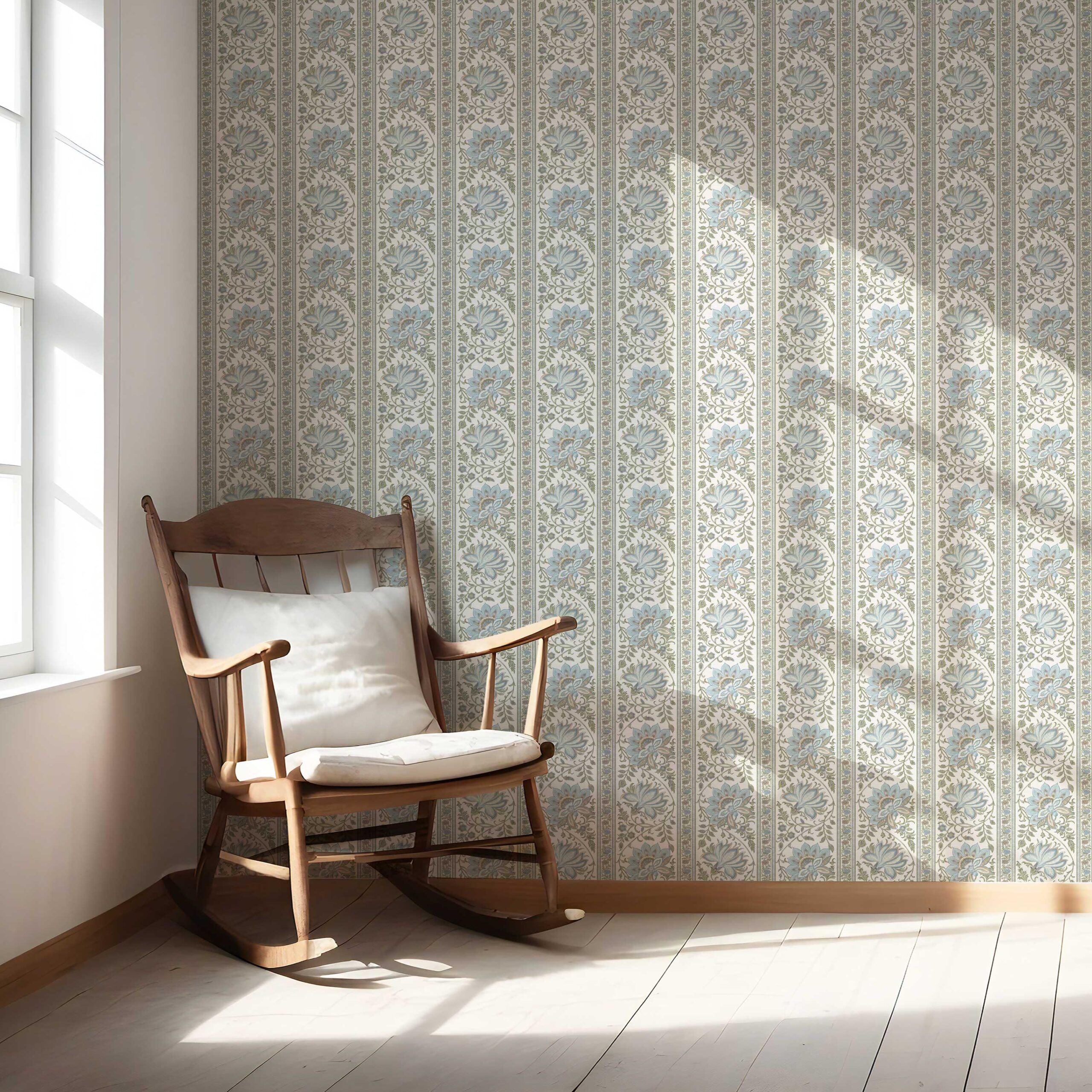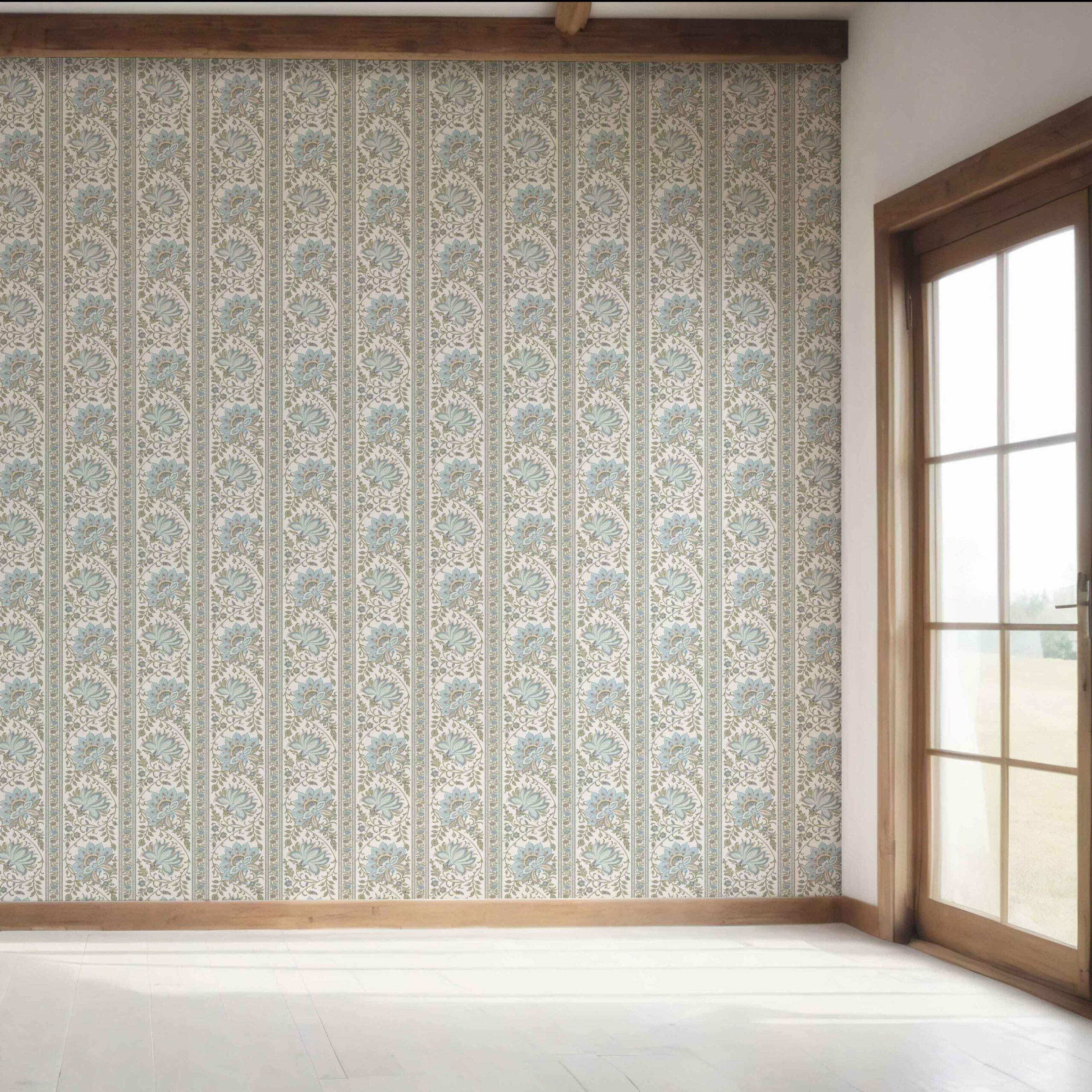 NON-PASTED: ‘Koumudi’ is an unpasted wallpaper installed by applying adhesive paste (not provided by us, but easy to source) to the wall. While peel-and-stick papers do not leave much room to change the paper’s position once you start applying it, the traditional, non-pasted application is more forgiving, allowing for better positioning when matching patterns.
