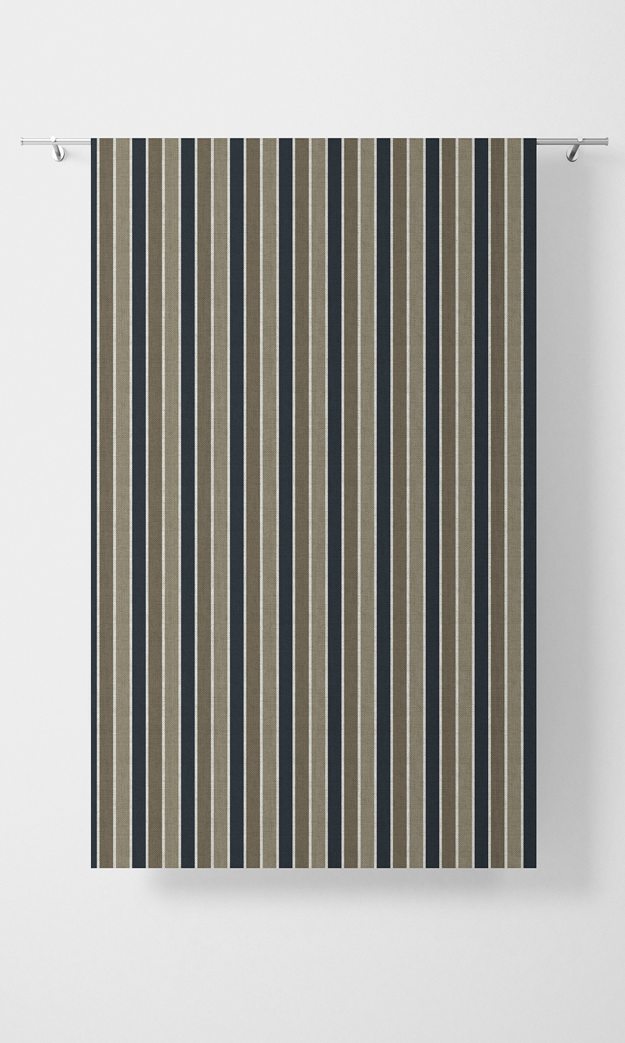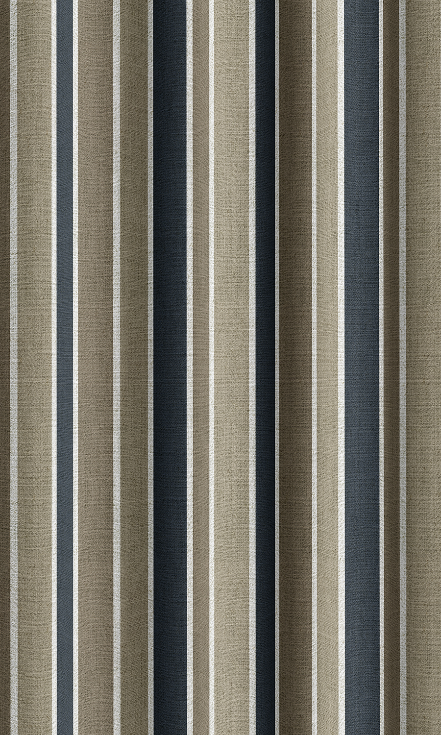 Add sanctuary style to your living room with this alluring fabric. ‘Krimson Lake’ is printed on a texturally rich, herringbone weave base and features a soothing color palette in navy blue and soft shades of brown. Its repeating stripes enliven its look to balance with its calming tones. Use it for flat panel roman shades for your master bedroom or a casual heading styled drape for your living room.?