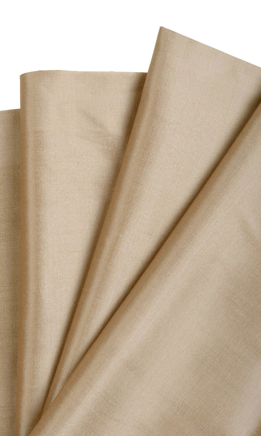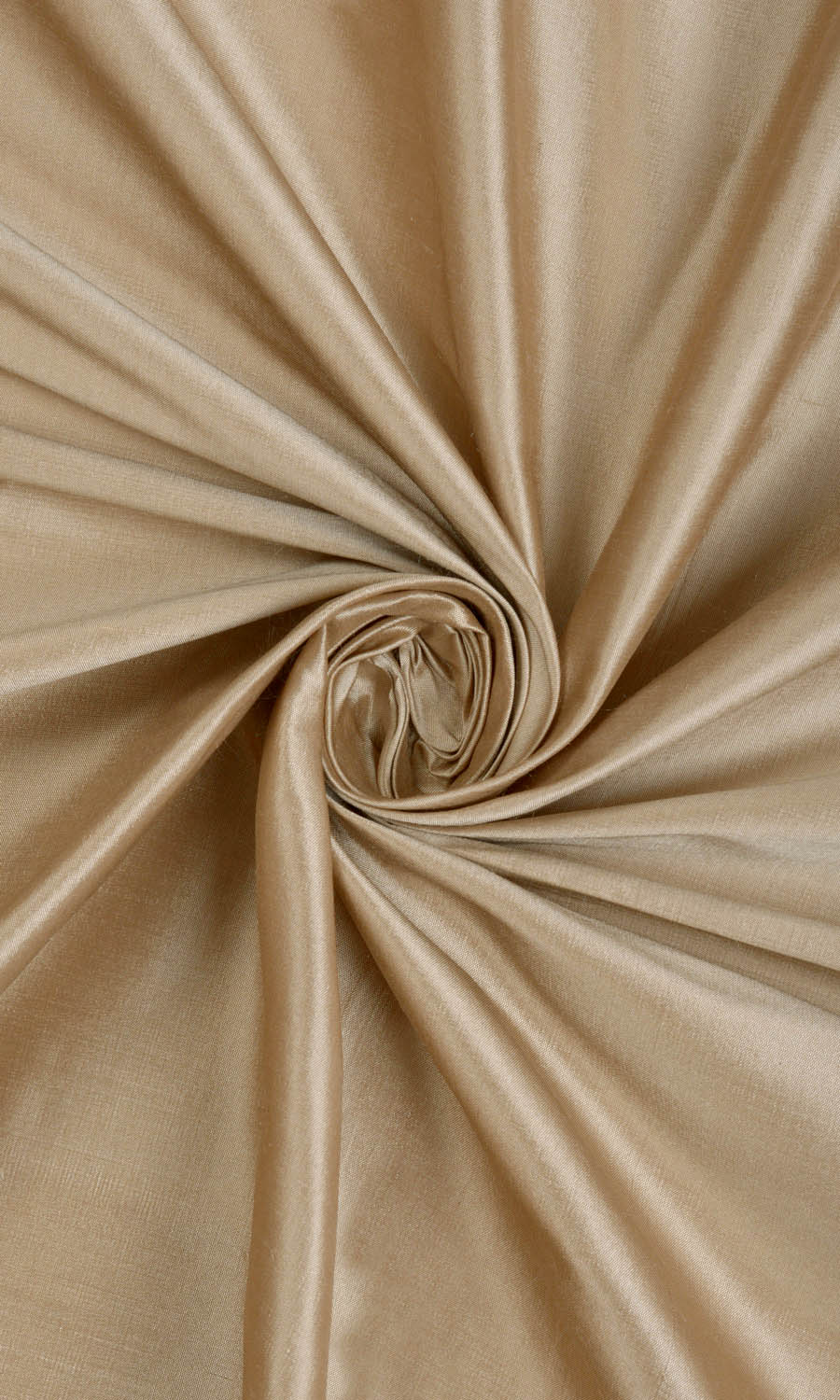 If real silk were to go in a dream state, it would surely look like Kum. This 100% pure silk drapery fabric is a soft spruce brown color that seems to glisten. Gentle, mellow and rich, it is the perfect complement for a decor that makes a quiet yet unmistakable statement of old world class.