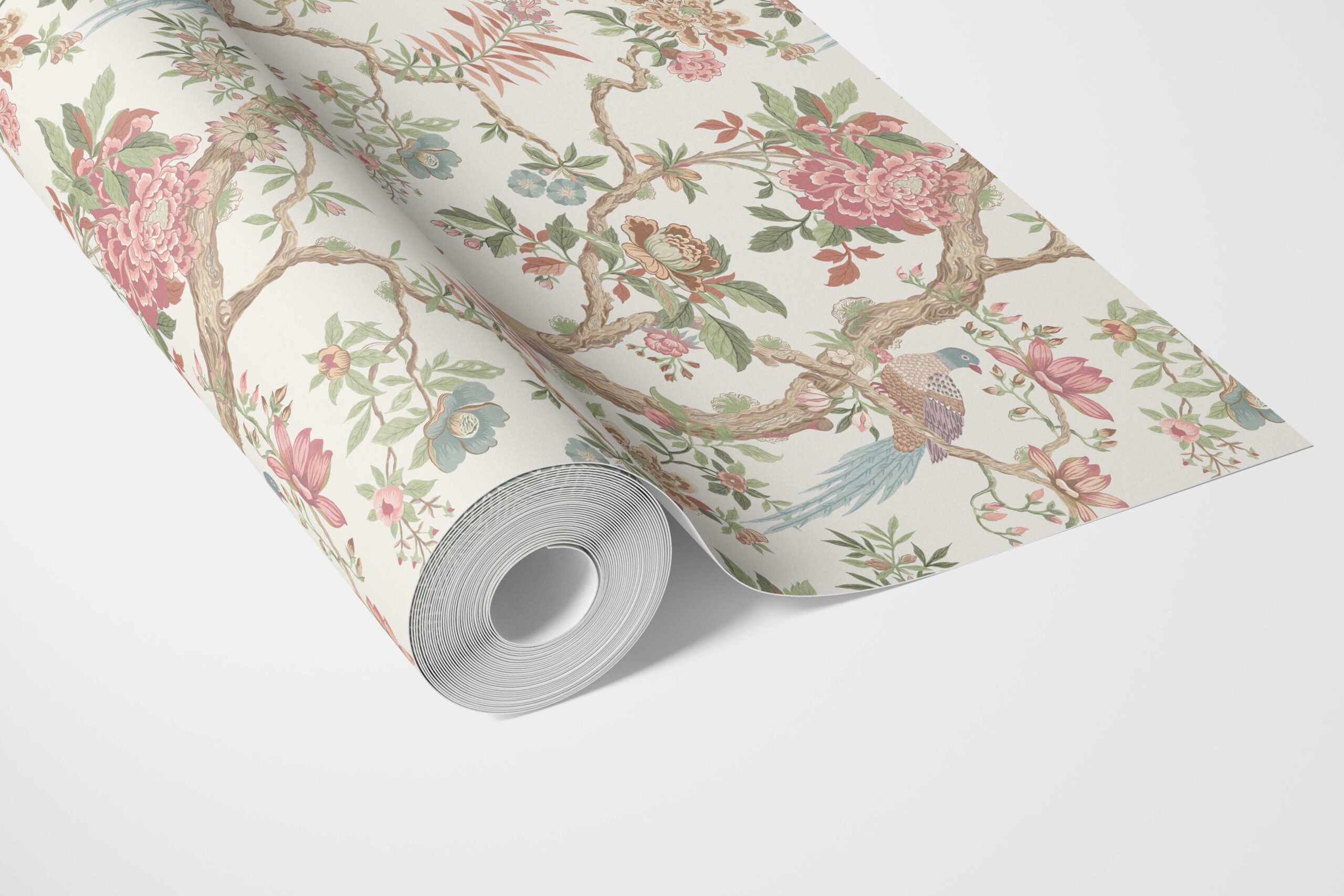 NON-PASTED: ‘Kusum’ is an unpasted wallpaper installed by applying adhesive paste (not provided by us, but easy to source) to the wall. While peel-and-stick papers do not leave much room to change the paper’s position once you start applying it, the traditional, non-pasted application is more forgiving, allowing for better positioning when matching patterns.