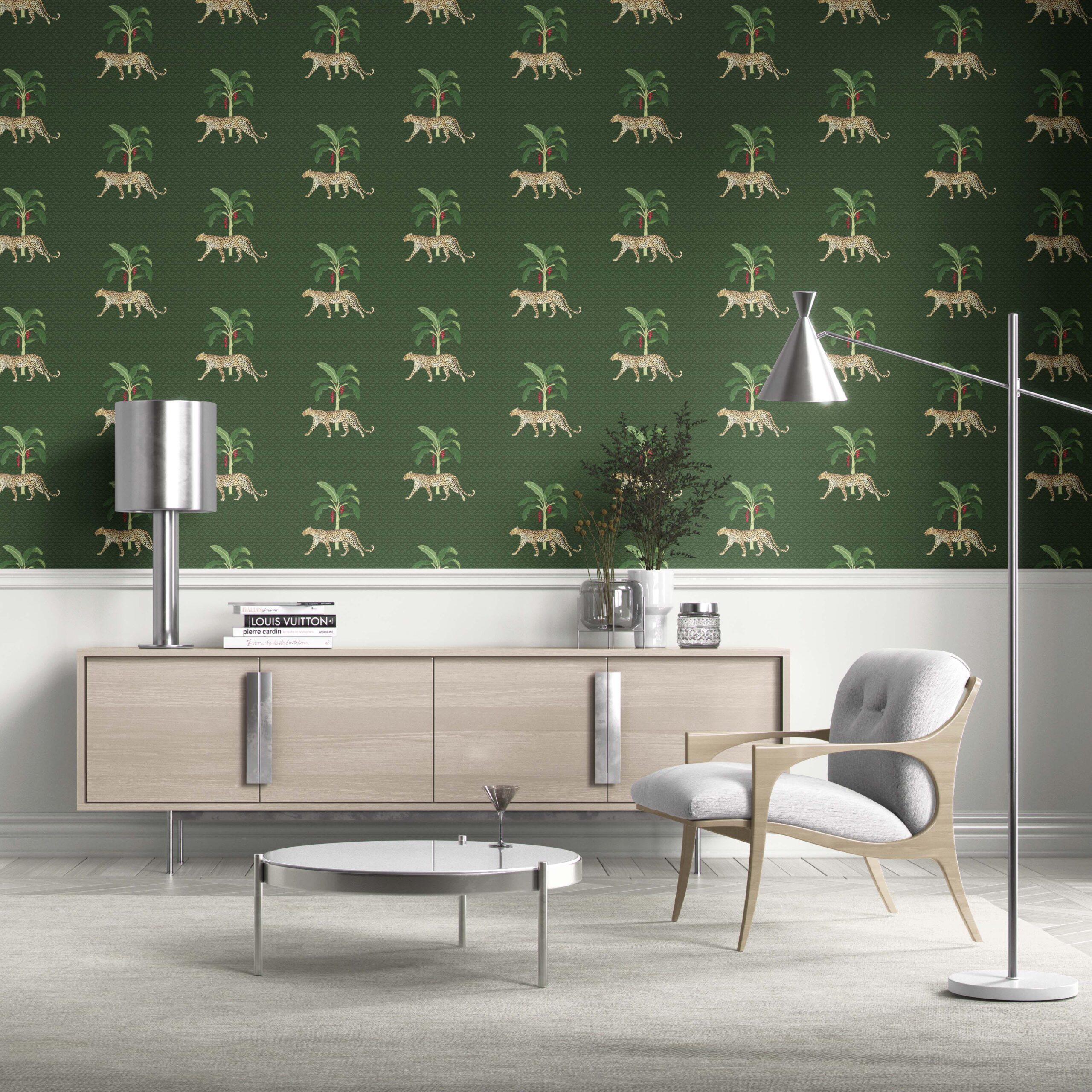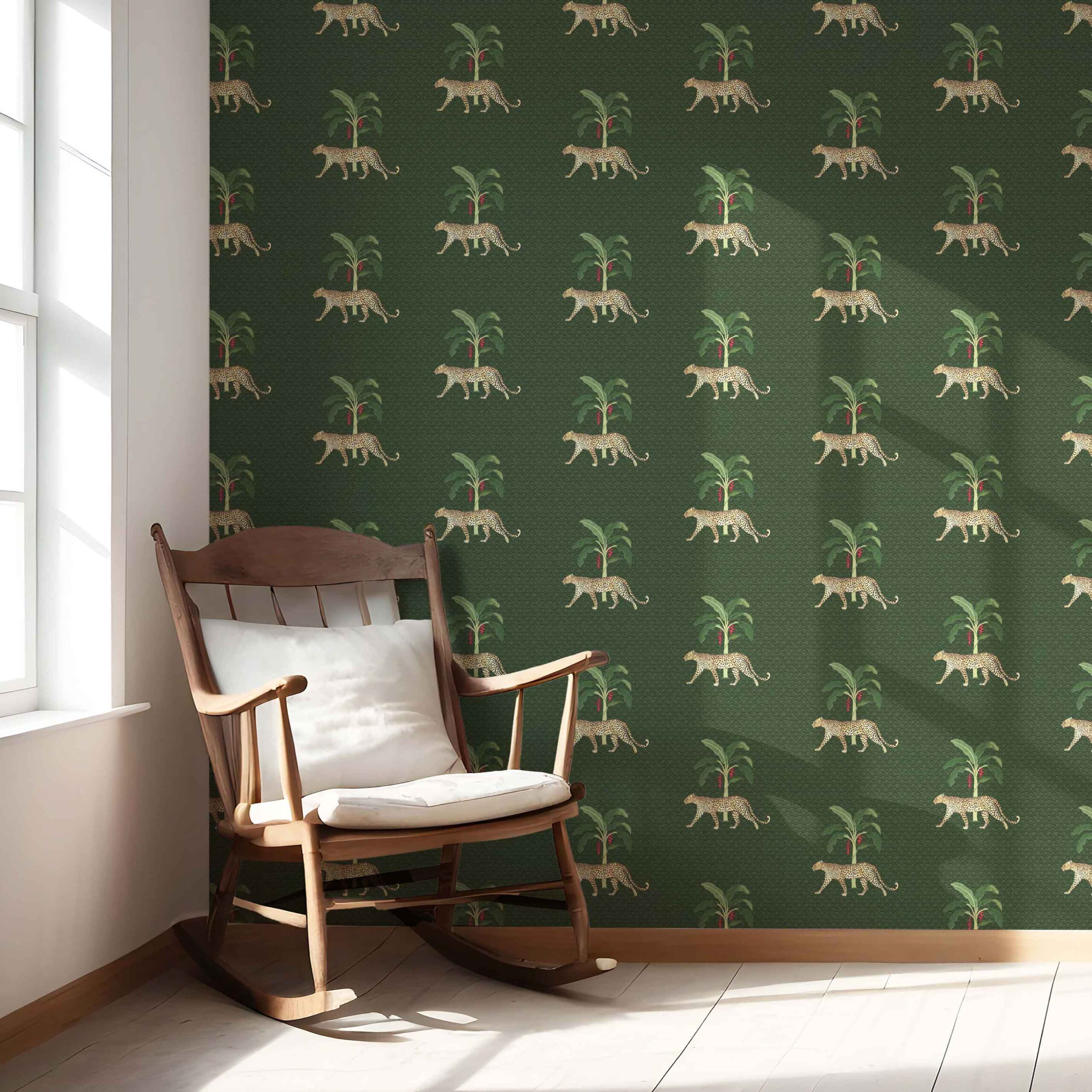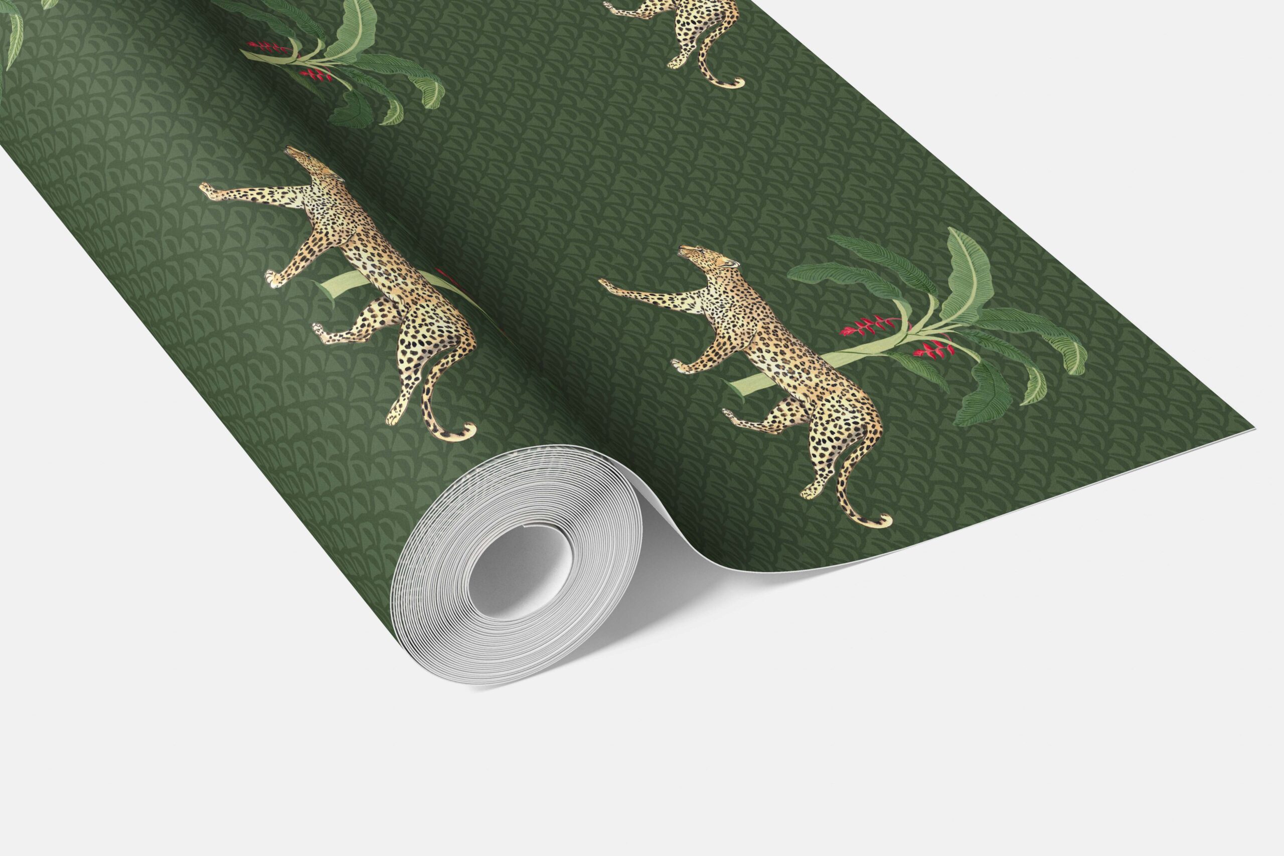 ‘Lavaux’ Leopard Animal Print Wallpaper (Green/ Red/ Tan)