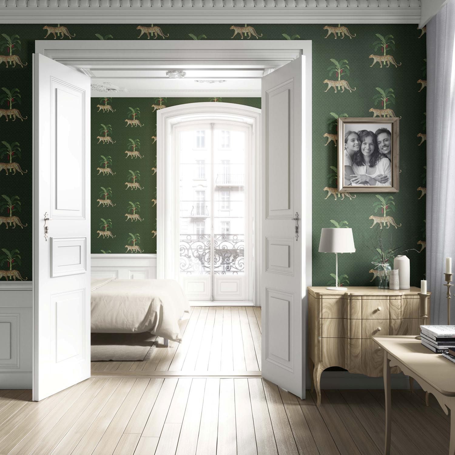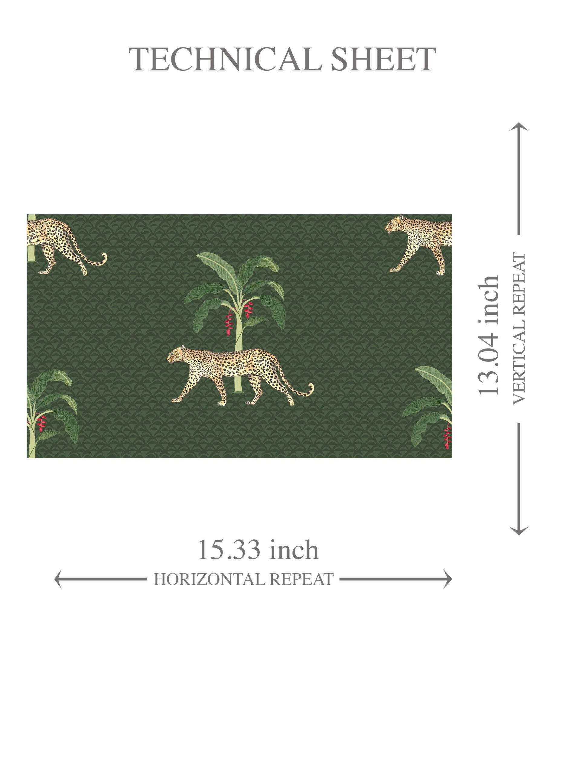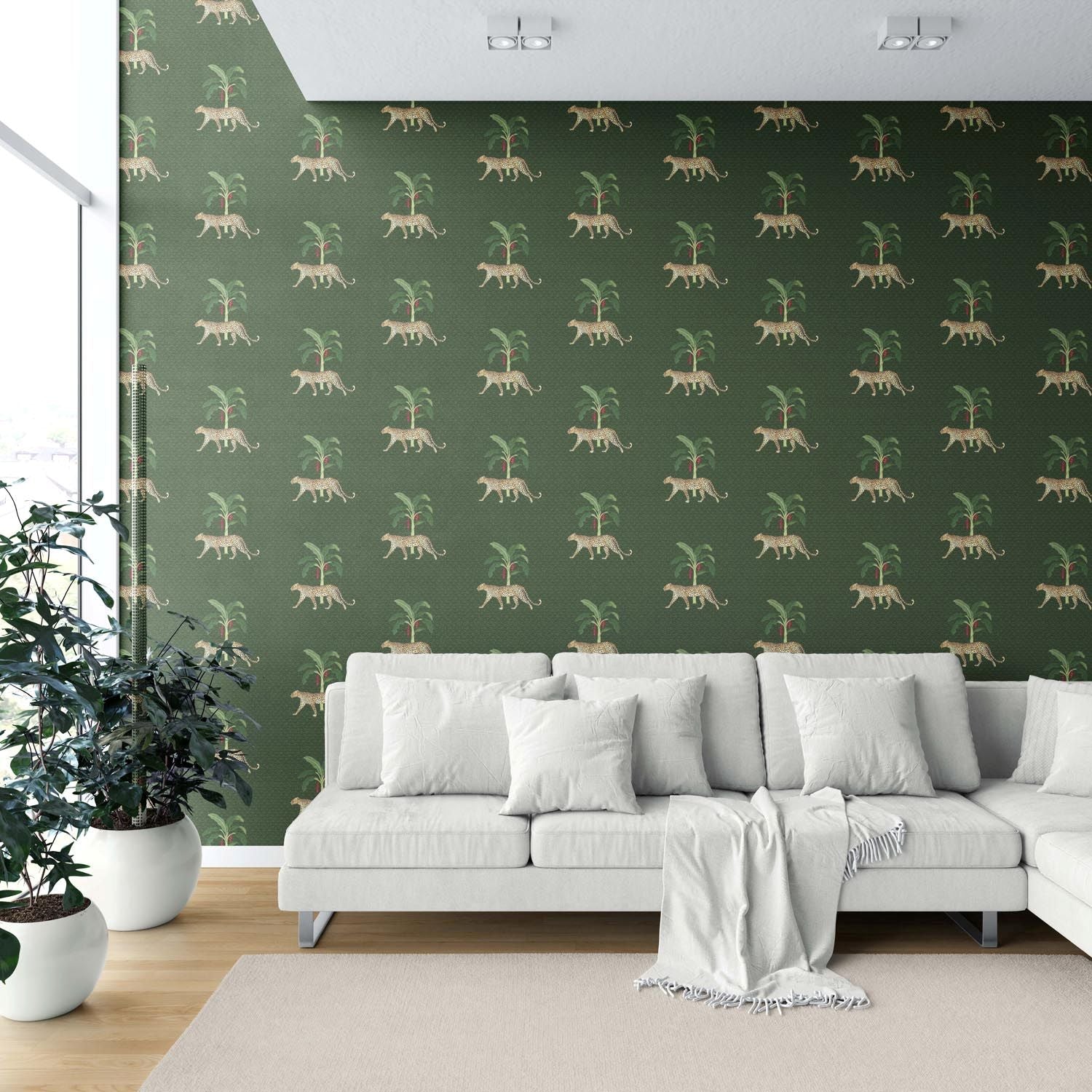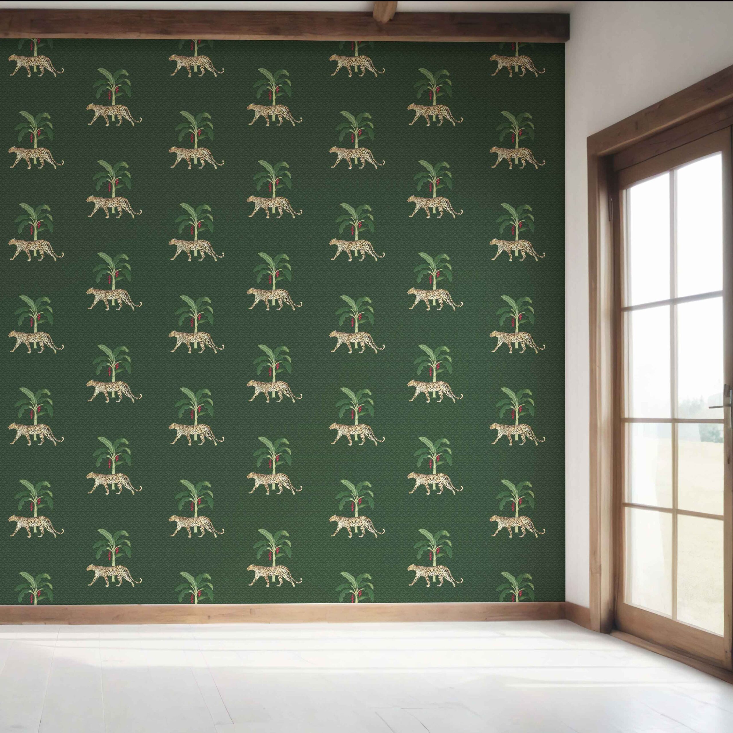 ‘Lavaux’ Leopard Animal Print Wallpaper (Green/ Red/ Tan)
