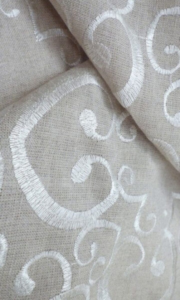 Bringing opulence to linen, our Leh collection is an offering of delicately embroidered pure linen fabrics in natural and white. The traditional motifs and intricate details bring richness and elegance to this most minimalistic of fabrics. Leh Itish features 100% natural linen with elegant floral embroidery overall. A perfect piece for decor enthusiasts who like the simplicity of linen but want something a little bit more than the usual monochrome.