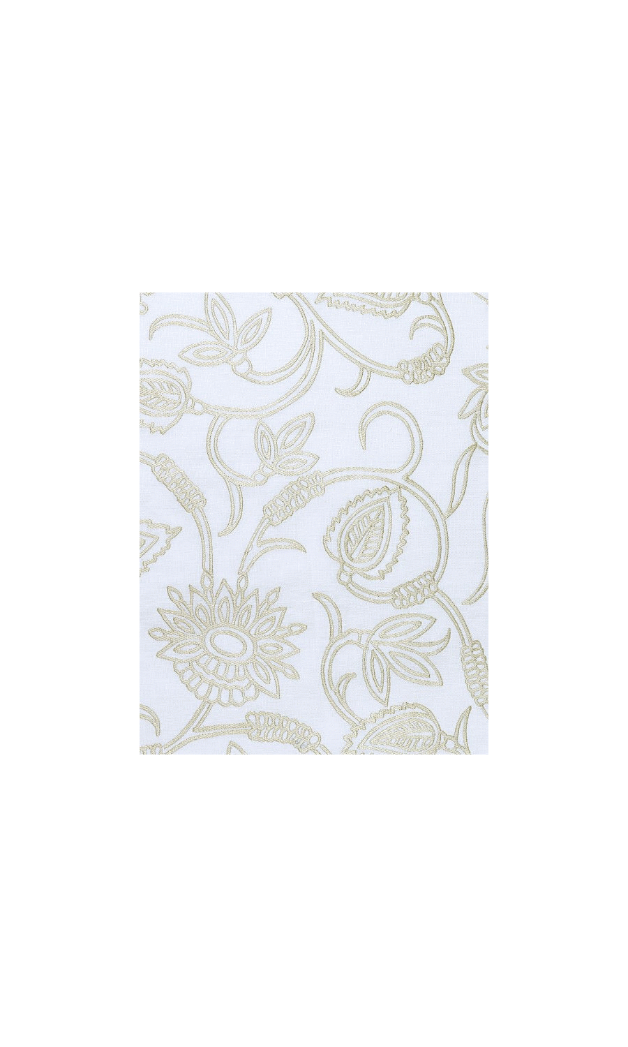 Bringing opulence to linen, our Leh collection is an offering of delicately embroidered pure linen fabrics in natural and white. The traditional motifs and intricate details bring richness and elegance to this most minimalistic of fabrics. Leh Manya features 100% bright white linen with elegant floral embroidery overall. A perfect piece for decor enthusiasts who like the simplicity of linen but want something a little bit more than the usual monochrome.