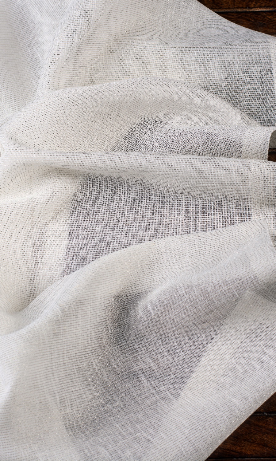 Clean and light modern sophistication! This sheer fabric redefines modern luxury with its self-patterned stripes and nubby texture on a quiet off-white. Enjoy the dance of light and shadow as Light Echo paints the home’s interiors with softly diffused daylight and subtle striated shadows. With an immensely versatile palette and pattern, this suave attraction can add soft elegance to any decor style, blend with any color scheme and adorn any room of the home with its serene charm.
