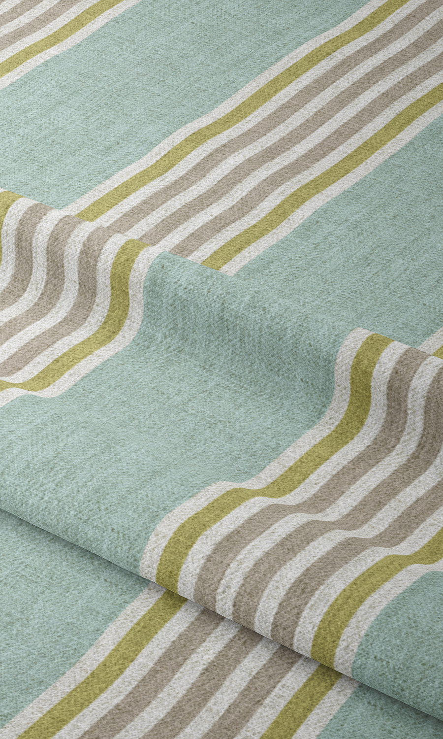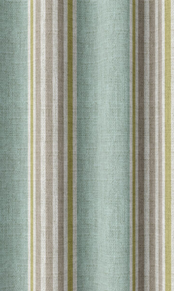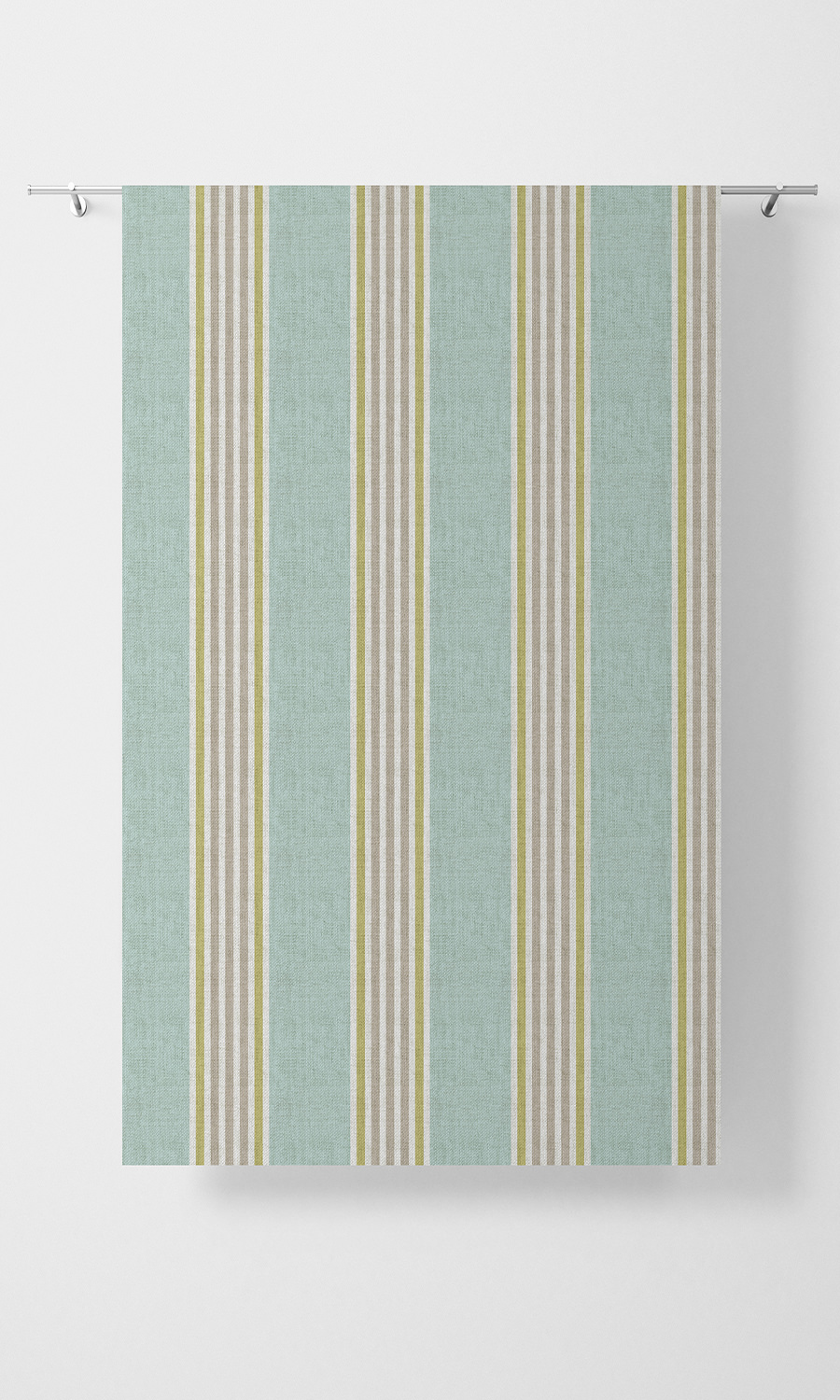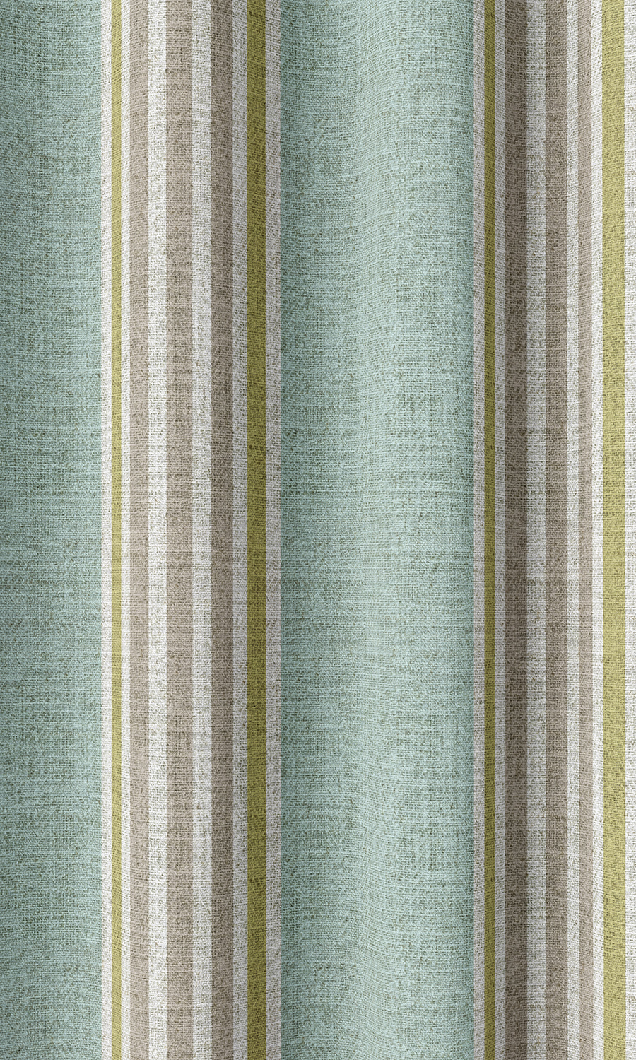 Create a cheerful mood for your living room or bedroom with this vibrant fabric. Featuring a repeating pattern of wide and candy stripes, Light Sabre has a rich herringbone weave base. It boasts oceanic hues of turquoise blue, apple green and warm grey that will add a pop of pizzazz to your living space, and is suited to many different decorating styles, including contemporary, transitional and mid-century modern. We recommend showcasing this fabric in flat panel roman shades and casual style drapes.?