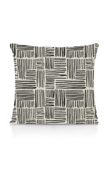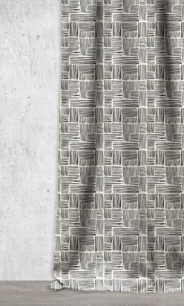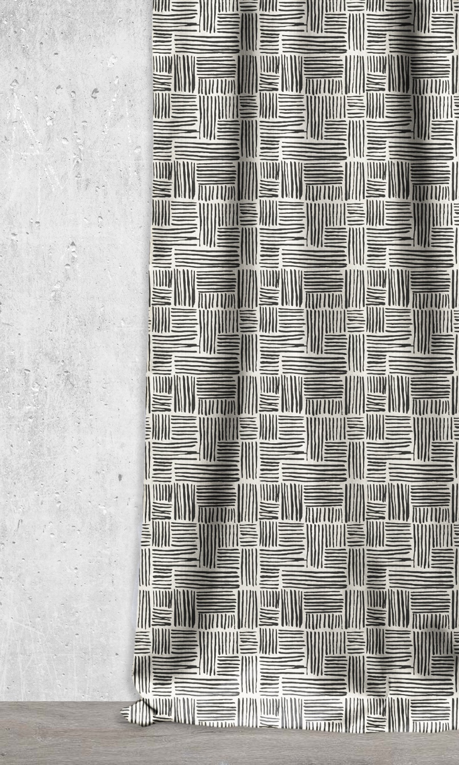 ‘Linear Patchwork’ Modern Print Bespoke Curtains (Black/ Ivory)