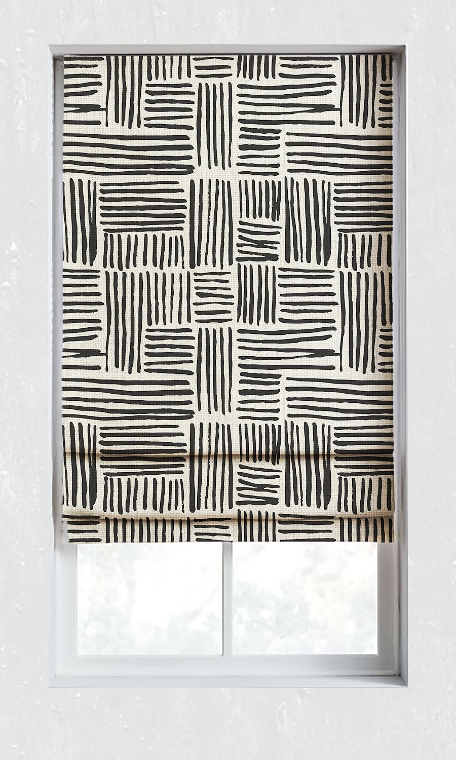 Bring a minimalist look to your decor with this linear-patterned fabric with a bold patchwork design. The off–kilter lines brim with eye-catching appeal and promise to attract the eye to your window views. This flatweave fabric is durably crafted and especially well-suited for our flat panel roman shades. With its versatile color scheme, you can pair this fabric with nearly any other combination of hues to achieve a unique look for your setting.