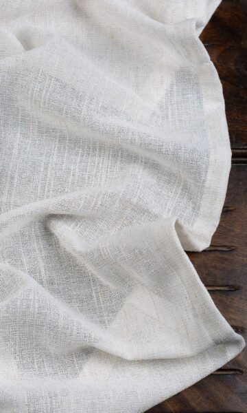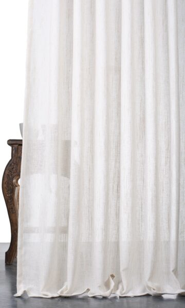 An ivory linen blend that offers gentle diffusion of light through its gauzy sheer weave. From offering visual warmth to a room gone cold with too much white to enriching an understated decor style with its lovely texture, there is much hidden potential in this understated fabric. Enjoy this quiet gorgeousness in the winning recipe of a linen-blend composition that offers homely charm sans the wrinkles.