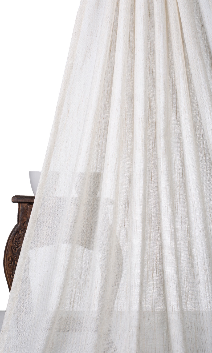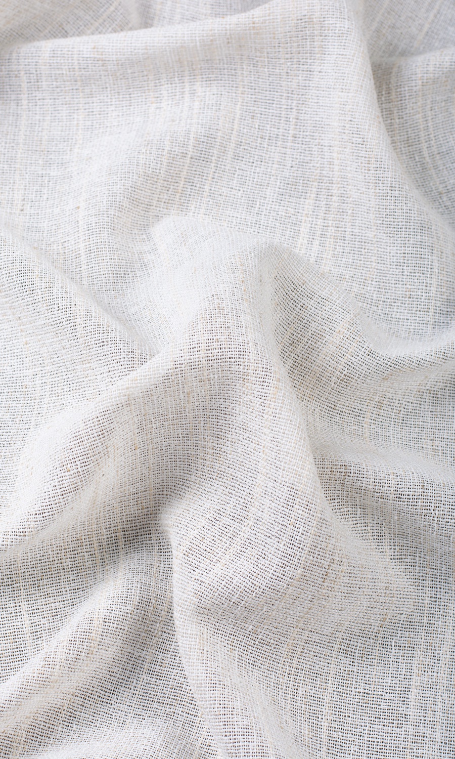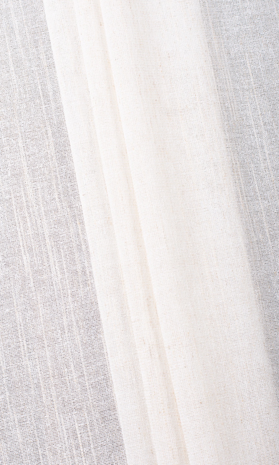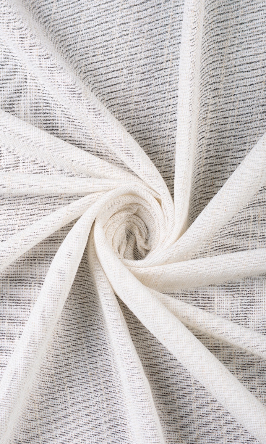 An ivory linen blend that offers gentle diffusion of light through its gauzy sheer weave. From offering visual warmth to a room gone cold with too much white to enriching an understated decor style with its lovely texture, there is much hidden potential in this understated fabric. Enjoy this quiet gorgeousness in the winning recipe of a linen-blend composition that offers homely charm sans the wrinkles.