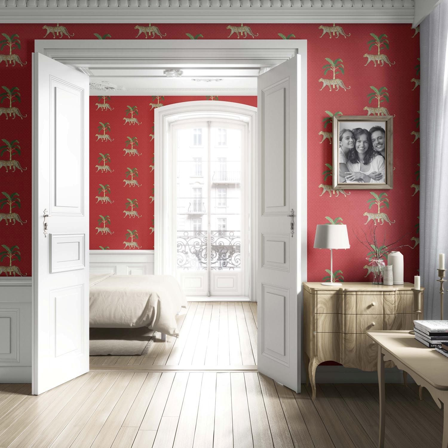 NON-PASTED: ‘Locarno’ is an unpasted wallpaper installed by applying adhesive paste (not provided by us, but easy to source) to the wall. While peel-and-stick papers do not leave much room to change the paper’s position once you start applying it, the traditional, non-pasted application is more forgiving, allowing for better positioning when matching patterns.