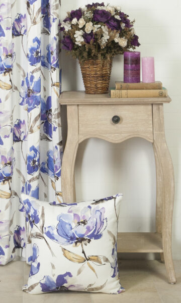 Cotton with a modern twist on florals. Fresh and spring-like – on a stunning palette of purples and beige, the floral design is definitely on the larger than life side while the colorway is gentle and soft. It’s a mixed bag that works so well. Perfectly and utterly elegant.