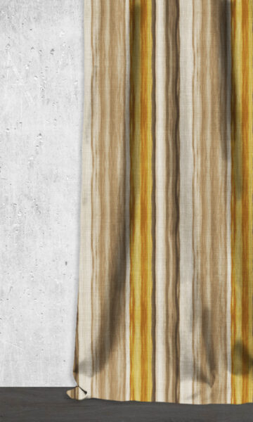 Add a splash of cheer to your living room, dining room, or den with this linen-like fabric and its pattern of blended stripes. ‘Lulu’ features a palette of shades of brown and honey yellow. The stripes are slightly undulating, lending a softening note to the pattern, which is sure to add a lively look to your living space.