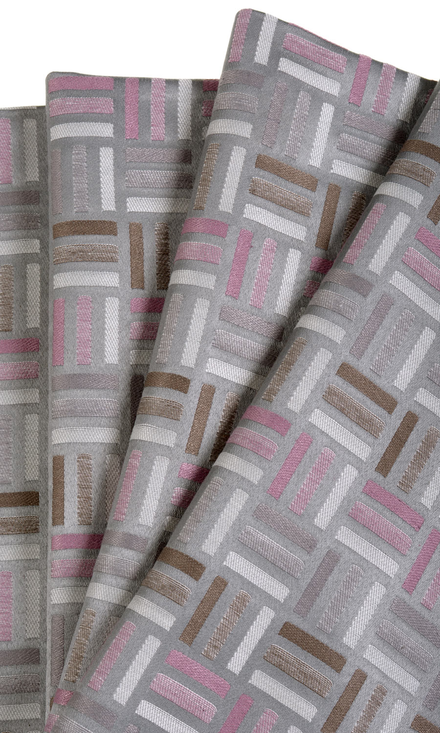 Ladders meet checks in this lovely fabric with shaded effect. The color palette of pink, charcoal grey and brown on a pale grey backdrop is pure elegance. When you want a dynamic pattern and dash of color to add some zing to a space, trust Lumo to do the job.