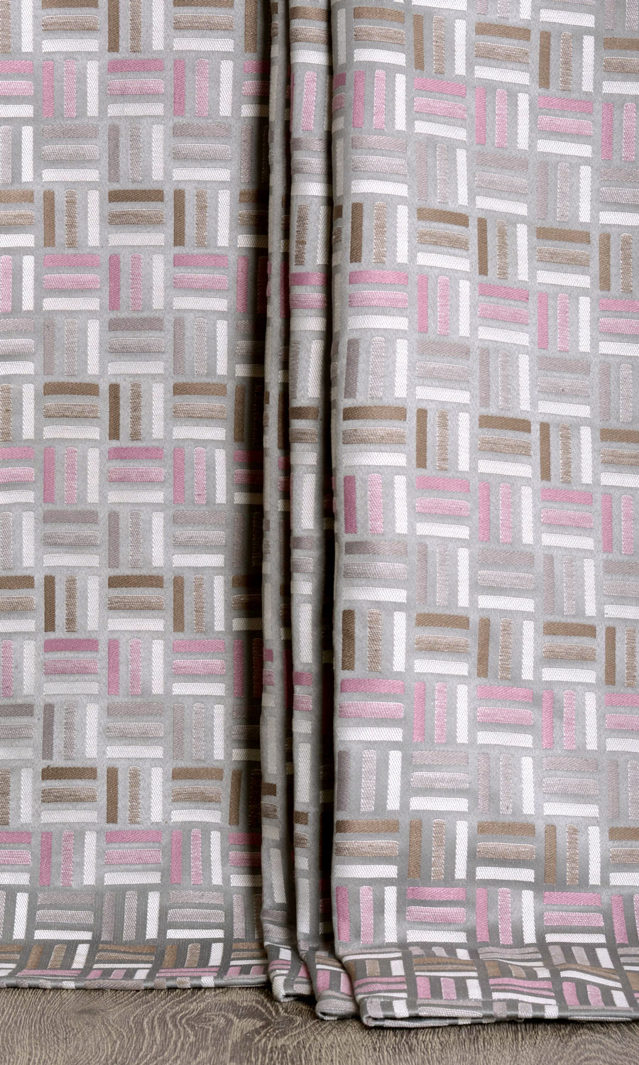 ‘Lumo’ Geometric Custom Size Curtains (Pink/ Grey/ Brown)