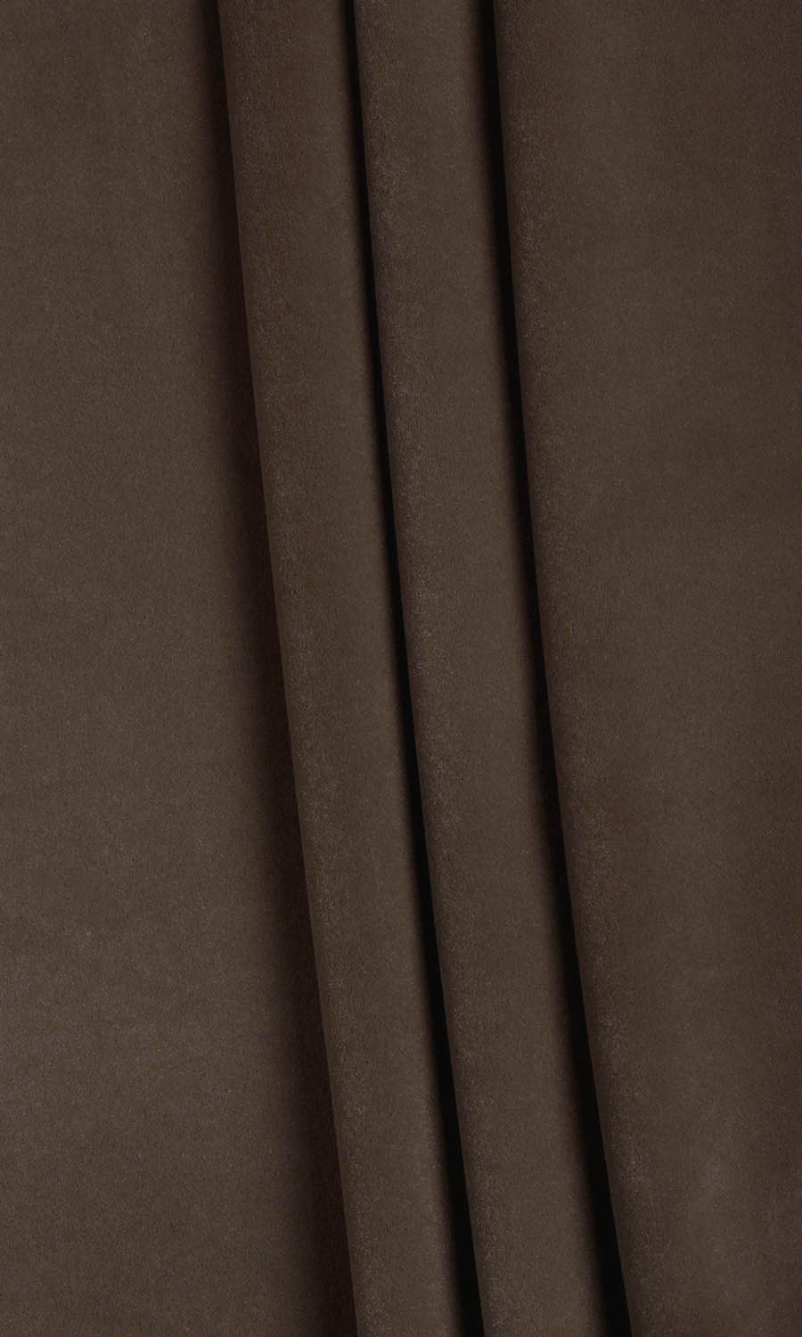Give a sophisticated touch to your home with coffee brown window dressings in this soft velvet drapery fabric. With indoor plants around, this earthy tone gets a suitable partnership to create an outdoorsy experience. The tactile element of the dense naps adds an element of coziness with its subliminal ?feel-me? call and tops up the textural layering of the room. Make it swoon-worthy in styles like pinch pleat drapes and relaxed roman shades that feature architectural folds.