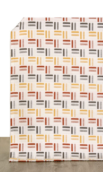Ladder meets checks style weave with shaded effect. The color palette of crimson red, ocher yellow and charcoal black on pure white backdrop is bold and bright. On the whole, this drapery fabric is just happiness, happiness, happiness.