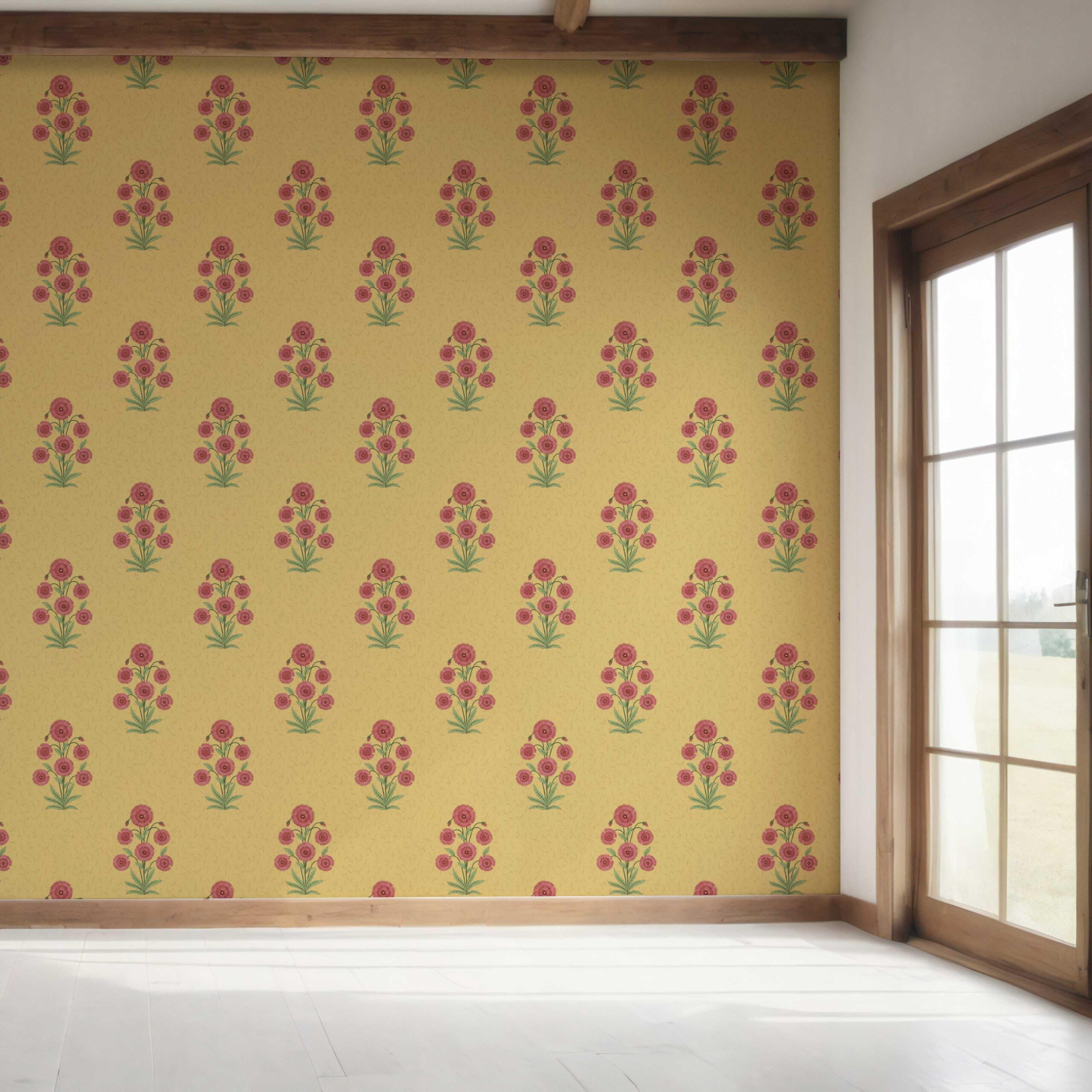 NON-PASTED: ‘Madhuvan’ is an unpasted wallpaper installed by applying adhesive paste (not provided by us, but easy to source) to the wall. While peel-and-stick papers do not leave much room to change the paper’s position once you start applying it, the traditional, non-pasted application is more forgiving, allowing for better positioning when matching patterns.