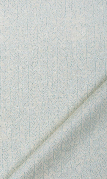 If you prefer minimalism with the barest hint of pattern in your drapery fabric pick, we recommend Madzi. This off white polycot fabric is patterned with the palest blue for an understated look. The part-geometric, part-impressionist pattern has columns and chevron zigzags. The base fabric has a mildly rough woven look; the pattern also has a smudged feel that looks like a work of art.
