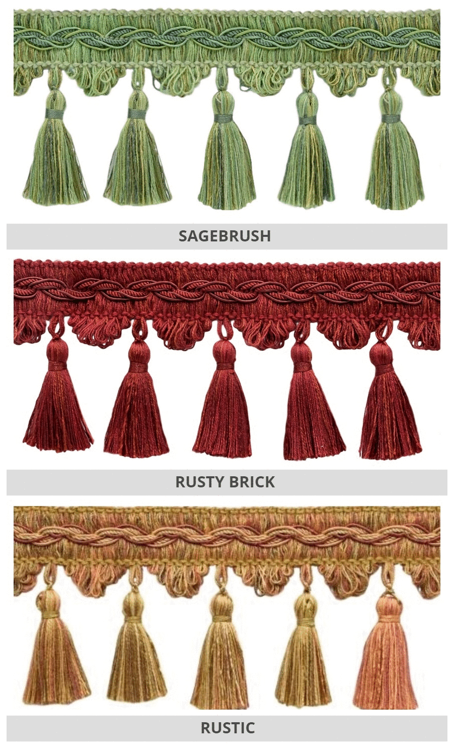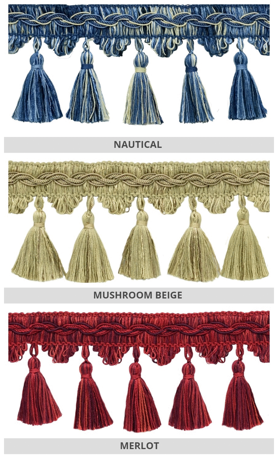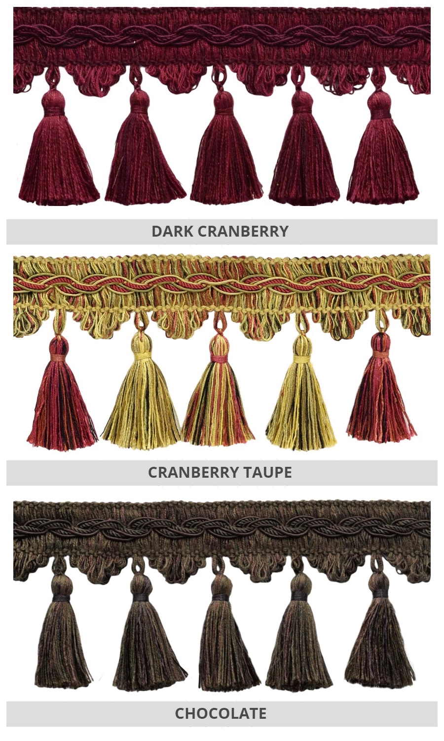 Dress up your custom roman shades with our delightfully rich tassel trims.