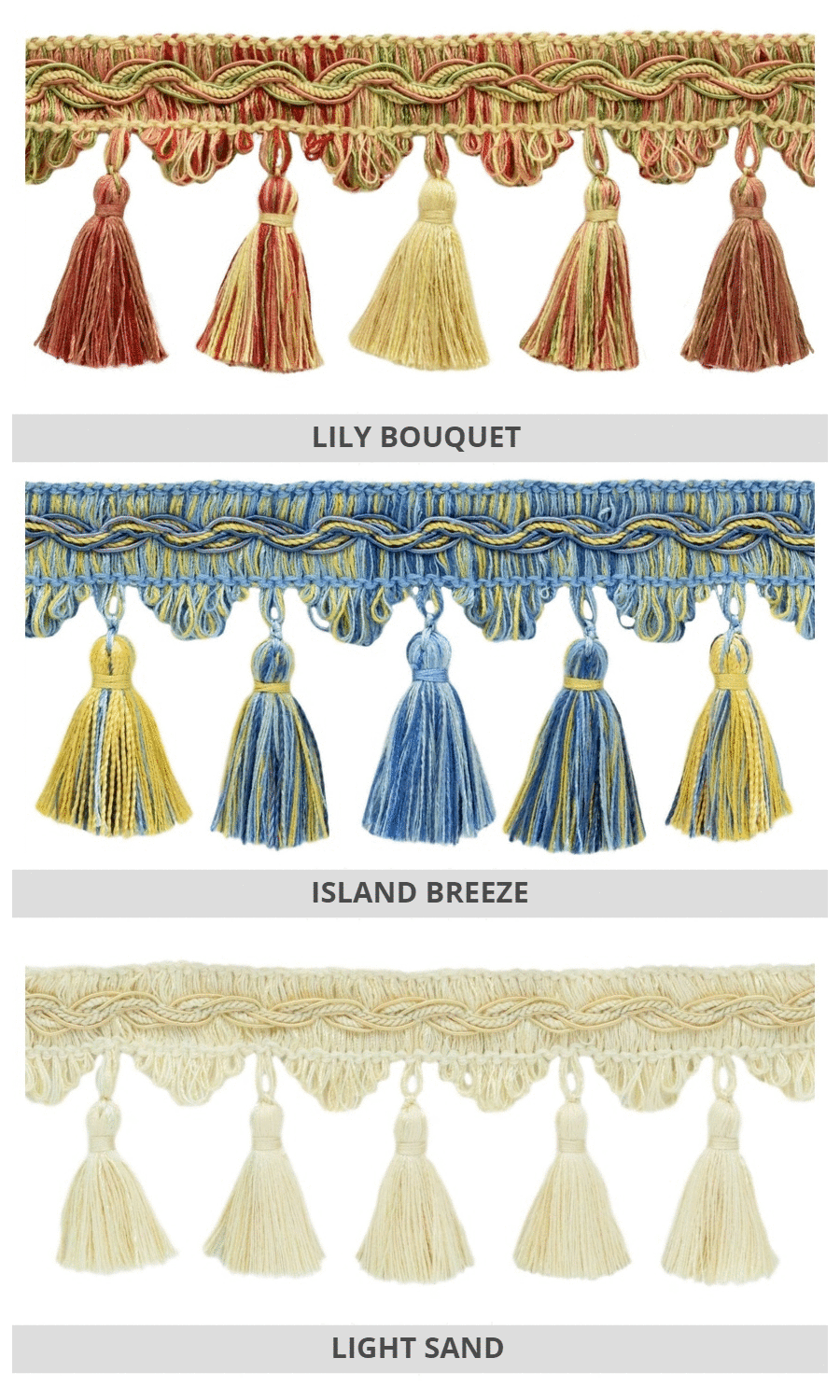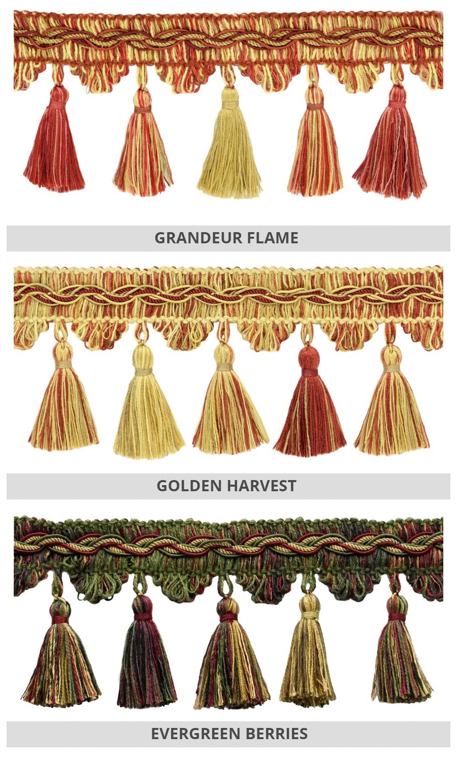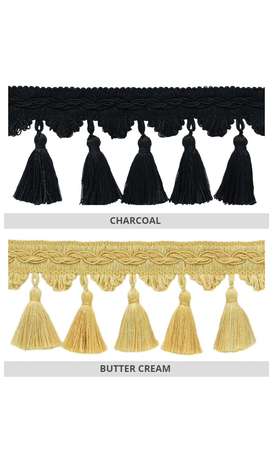 Dress up your custom roman shades with our delightfully rich tassel trims.