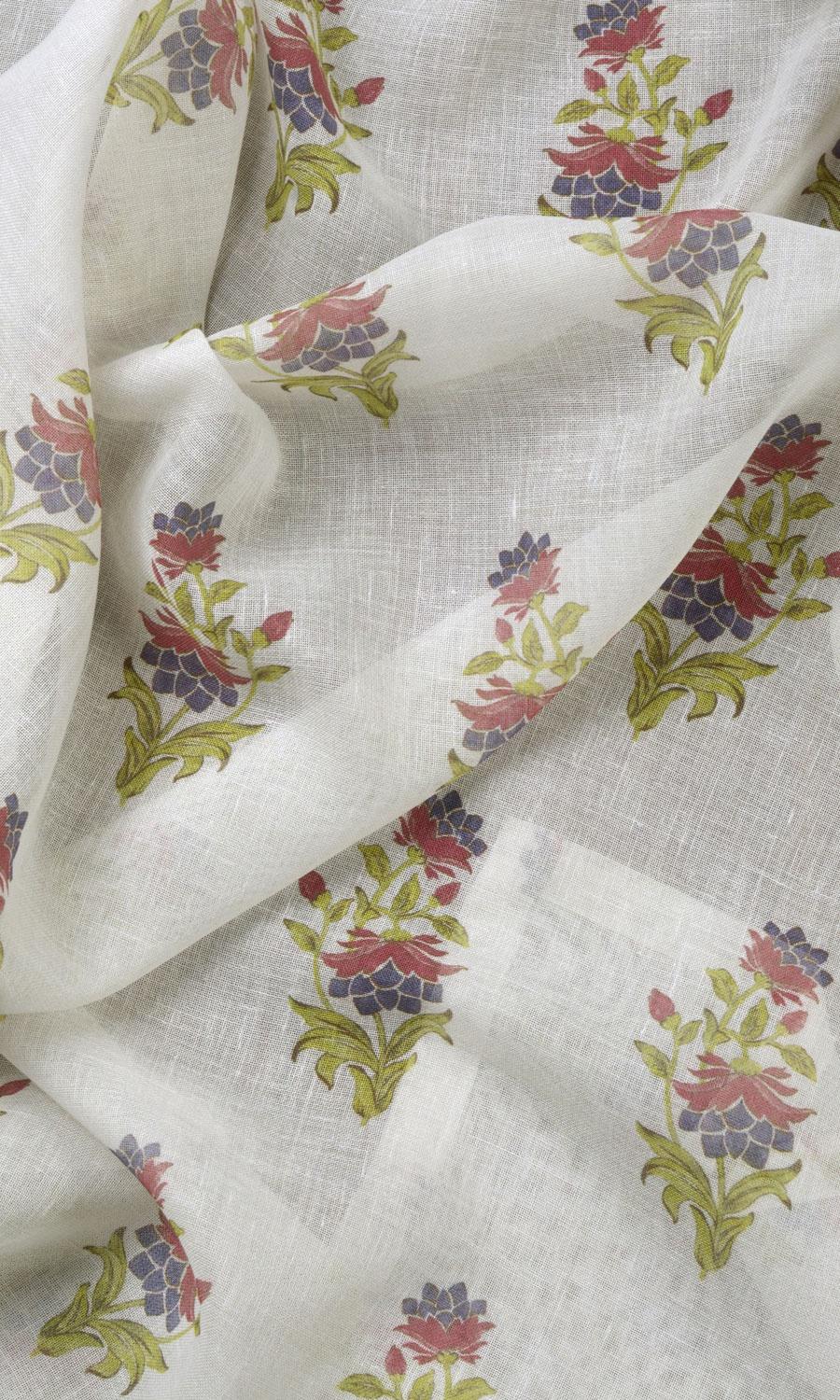 Epitome of floral allure! Exemplar of gracefulness and daintiness! Munchkin floral sprigs in tender shades of pink, purple and green on a gauzy cream backdrop make a winsome visual treat in Malachi. It can make your boudoir dreamy, your bohemian sweet digs a true bliss, and guest bedroom a wanton escape. Pair with solid pink/purple drapes and amplify that enchanting gorgeousness.