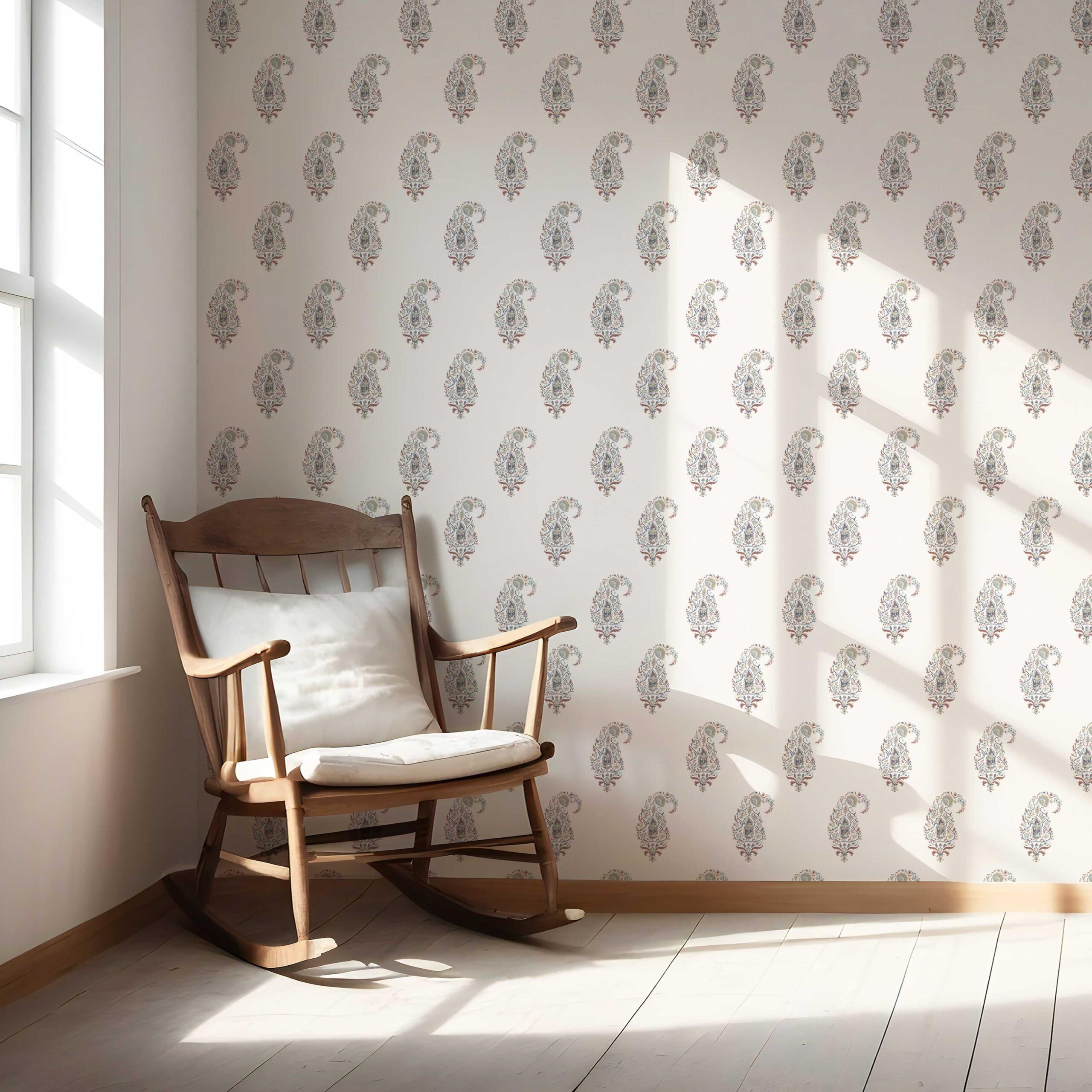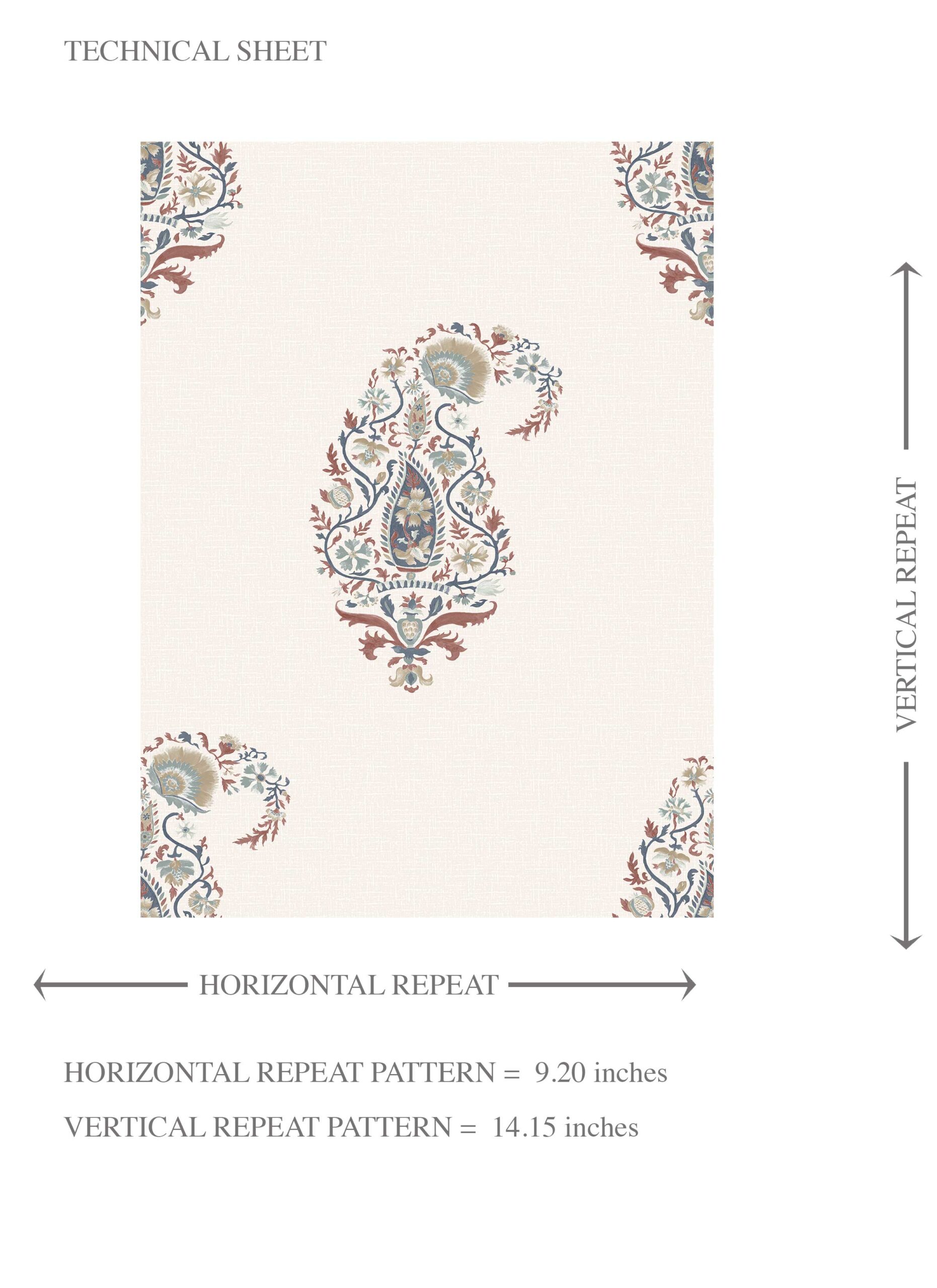 NON-PASTED: ‘Mango Motif’ is an unpasted wallpaper installed by applying adhesive paste (not provided by us, but easy to source) to the wall. While peel-and-stick papers do not leave much room to change the paper’s position once you start applying it, the traditional, non-pasted application is more forgiving, allowing for better positioning when matching patterns.