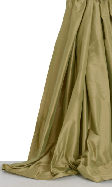 Imposters, move aside. Mantar, the real deal, is here to take a bow. This pure silk fabric in a graceful moss green color is true luxury. Its silken smoothness, glossy surface and impeccable fall make it the drapery fabric of choice for regal decors.