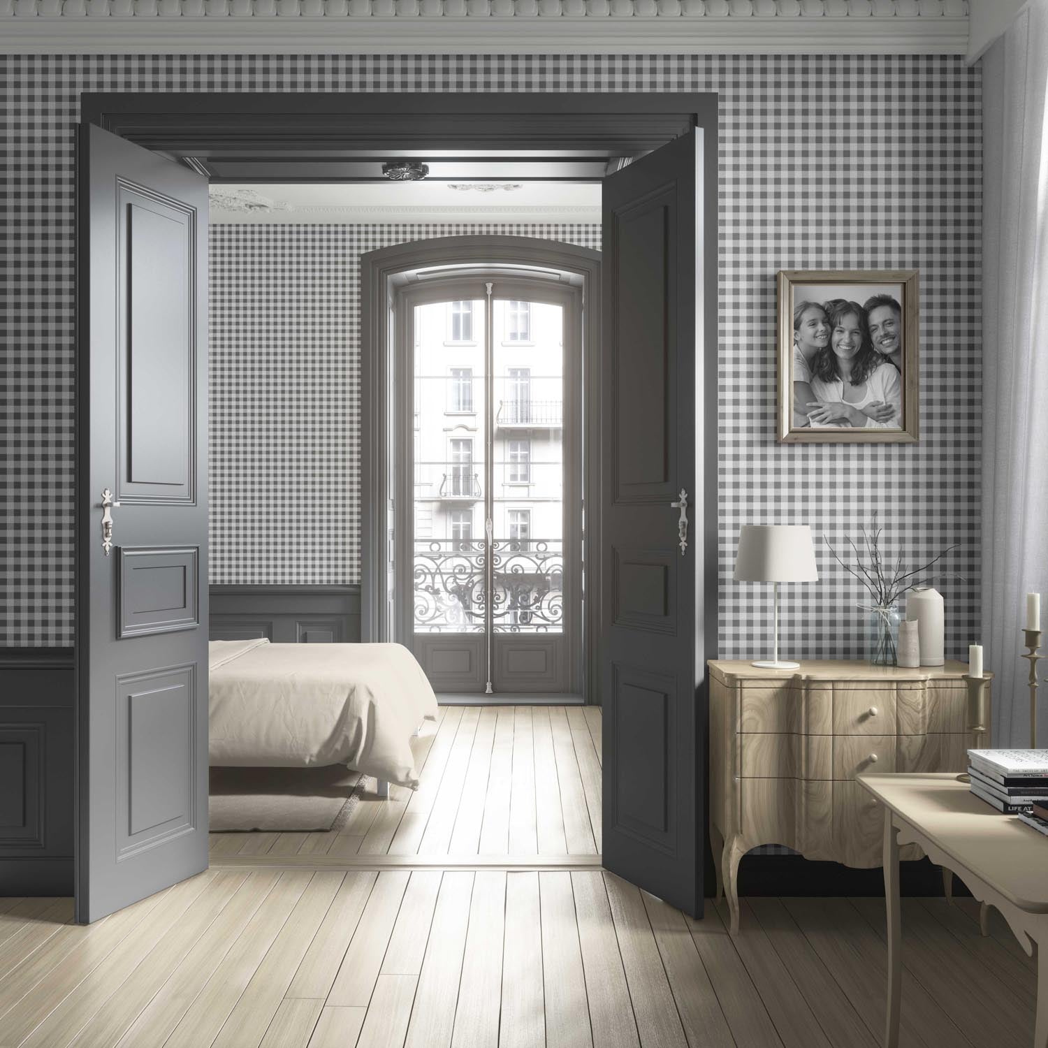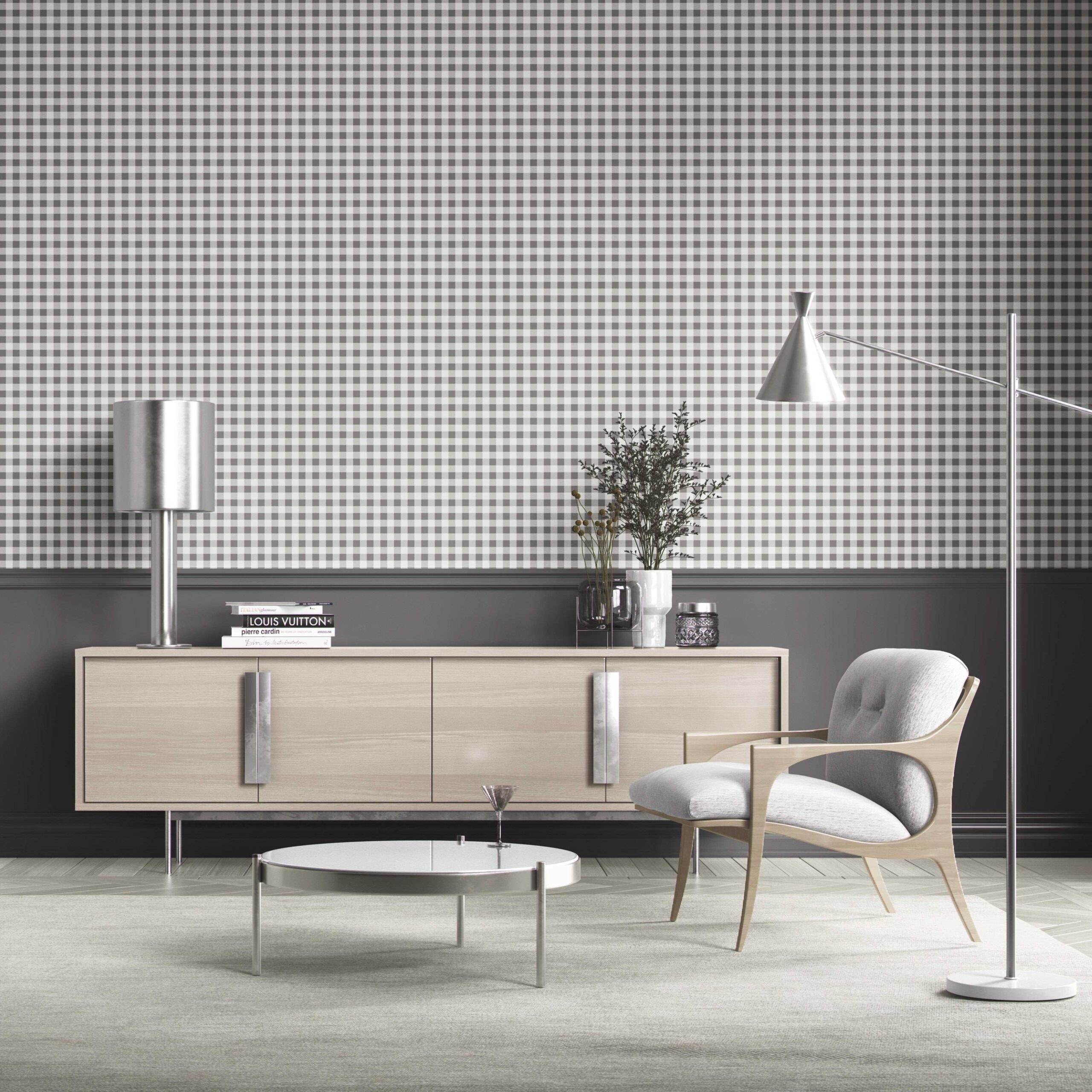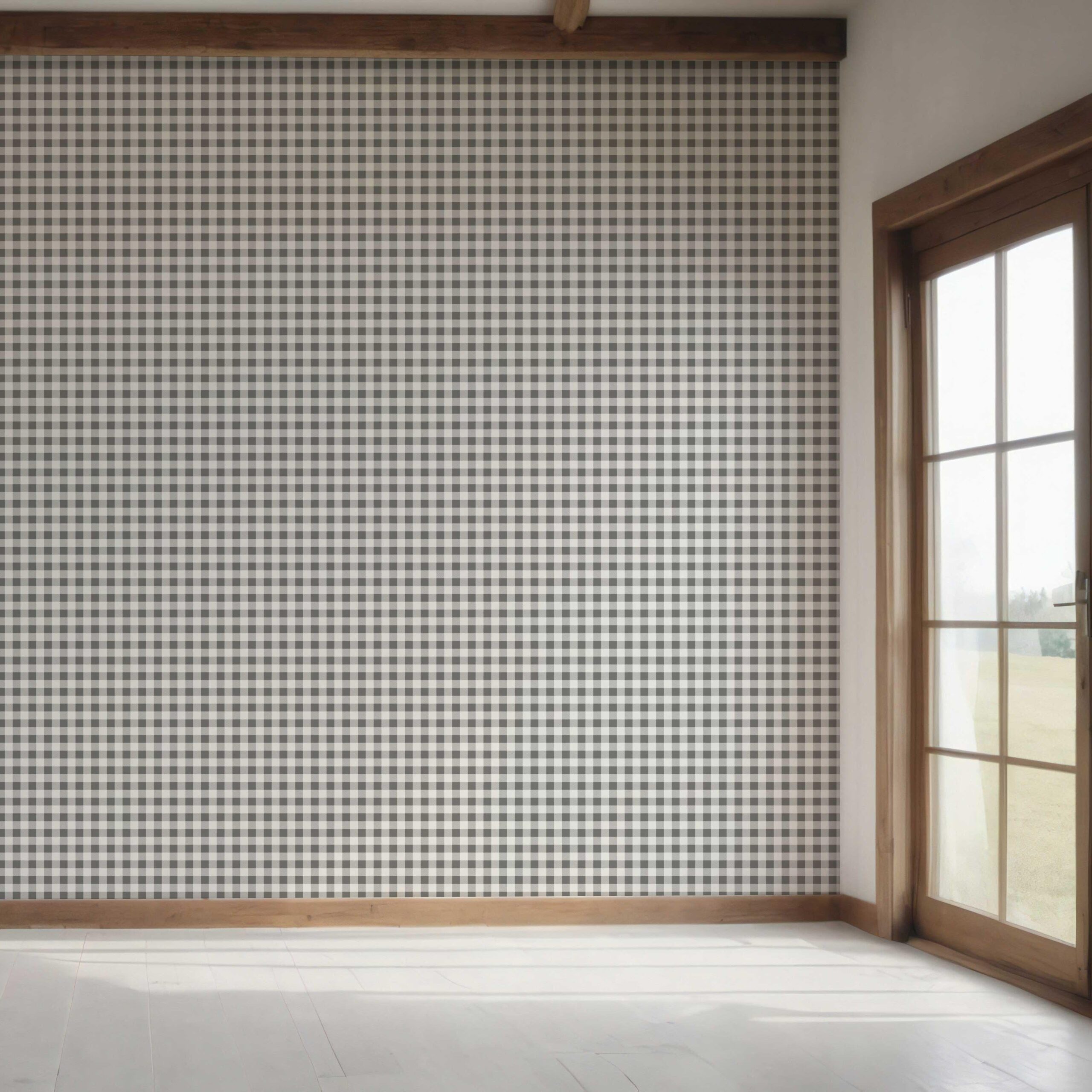 ‘Marama’ Neutral Gingham Checkered Wallpaper (Gray)