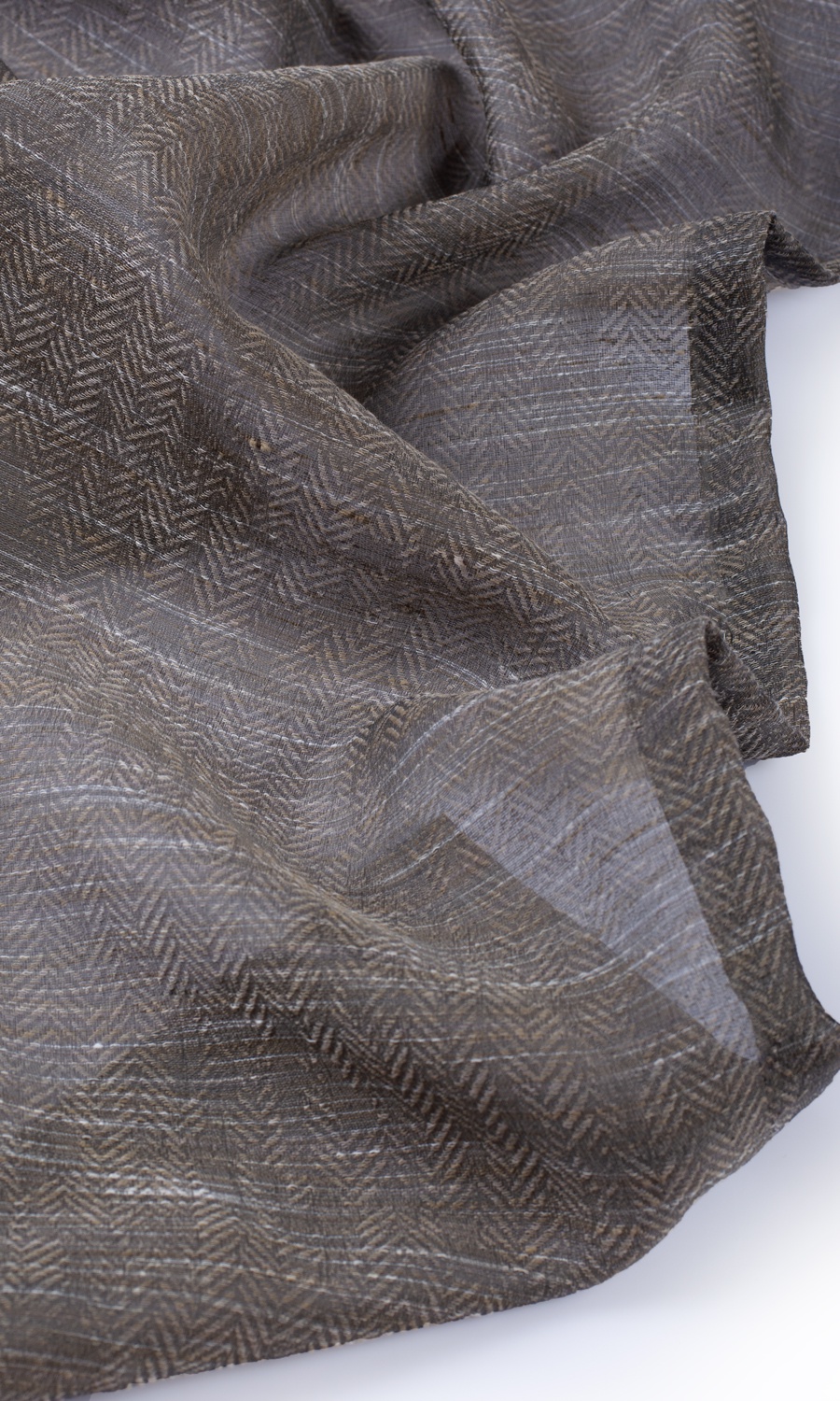 Mystical veils of a dark night. A moody sheer that keeps no secrets, Marrakesh flaunts a rich herringbone texture on a dark warm grey / brown. The perfect escape when you want to bring a dark hue to your space without letting it feel too broody or heavy. Enrich your decor with the saturated hues and dramatic shadows of this semi-transparent fabric.