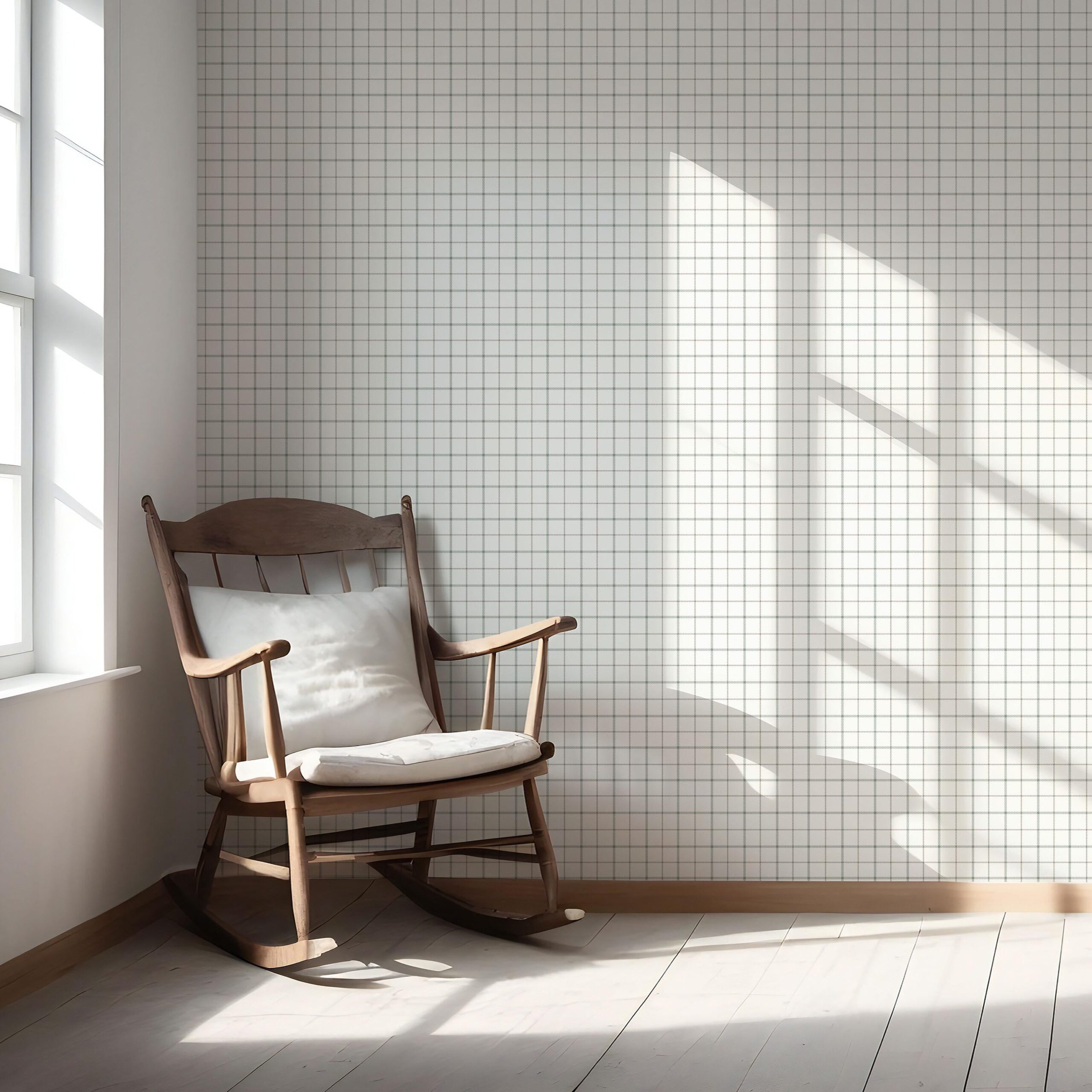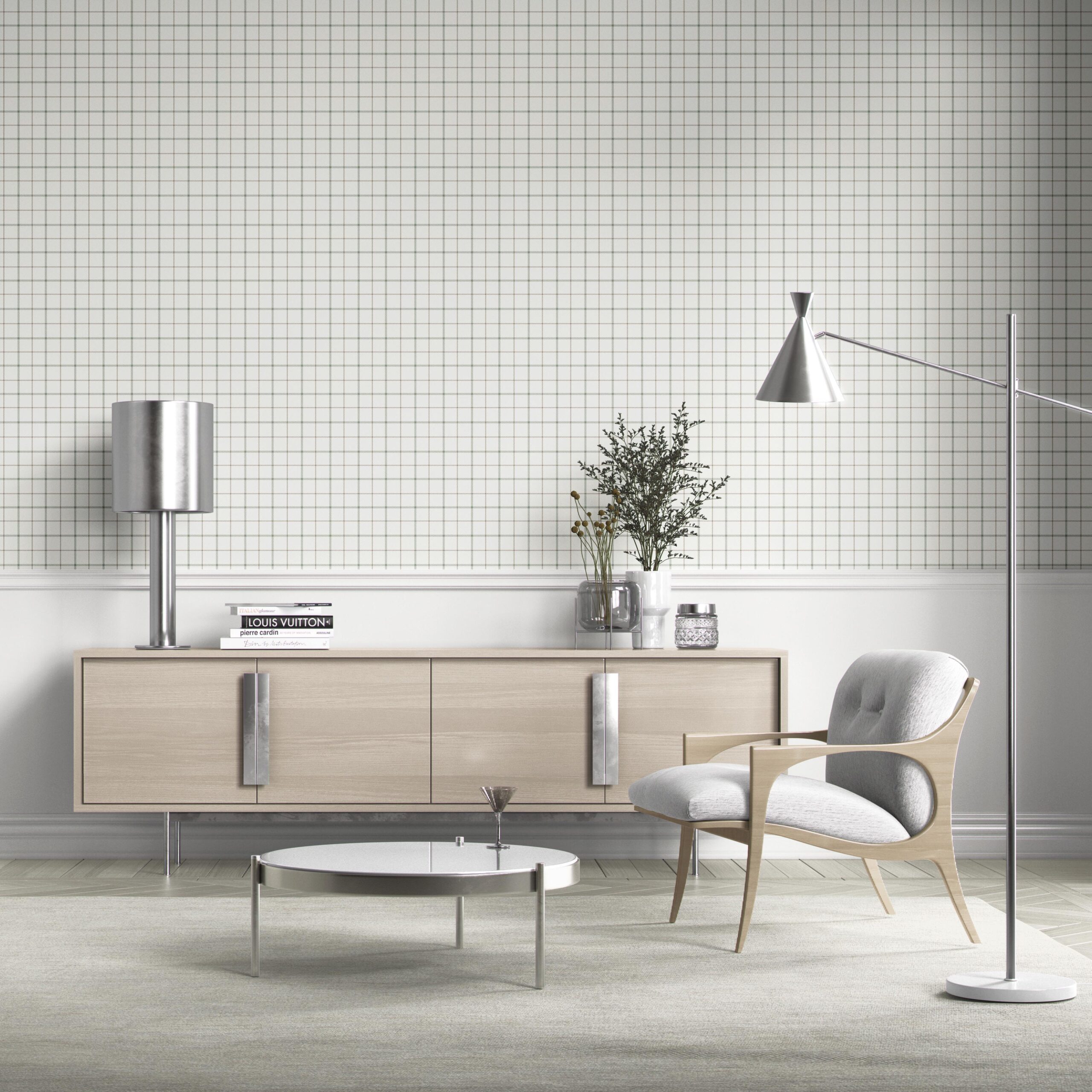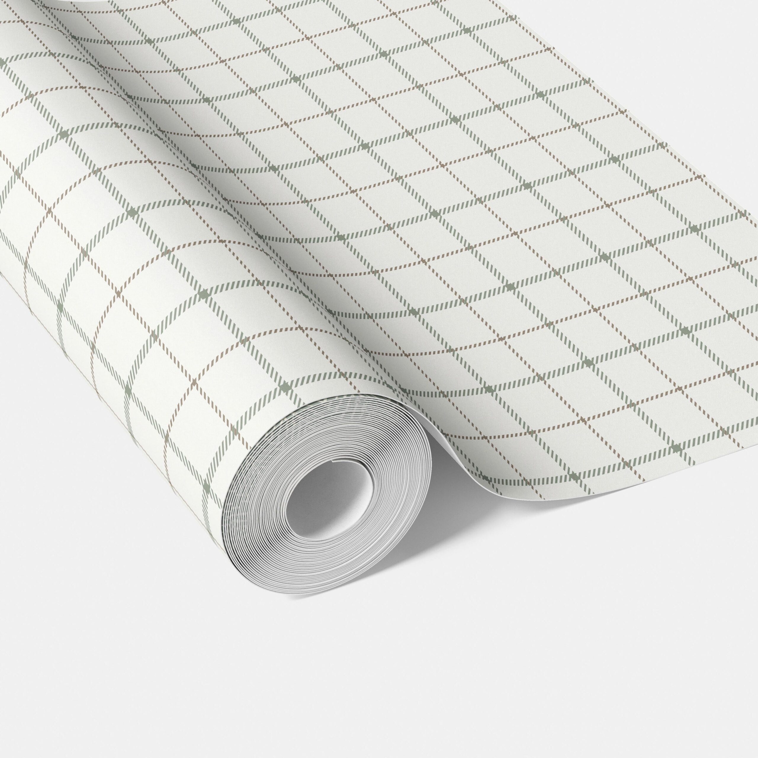 ‘Mascarpone’ Windowpane Checkered/ Plaid Wallpaper Green/ White/ Taupe