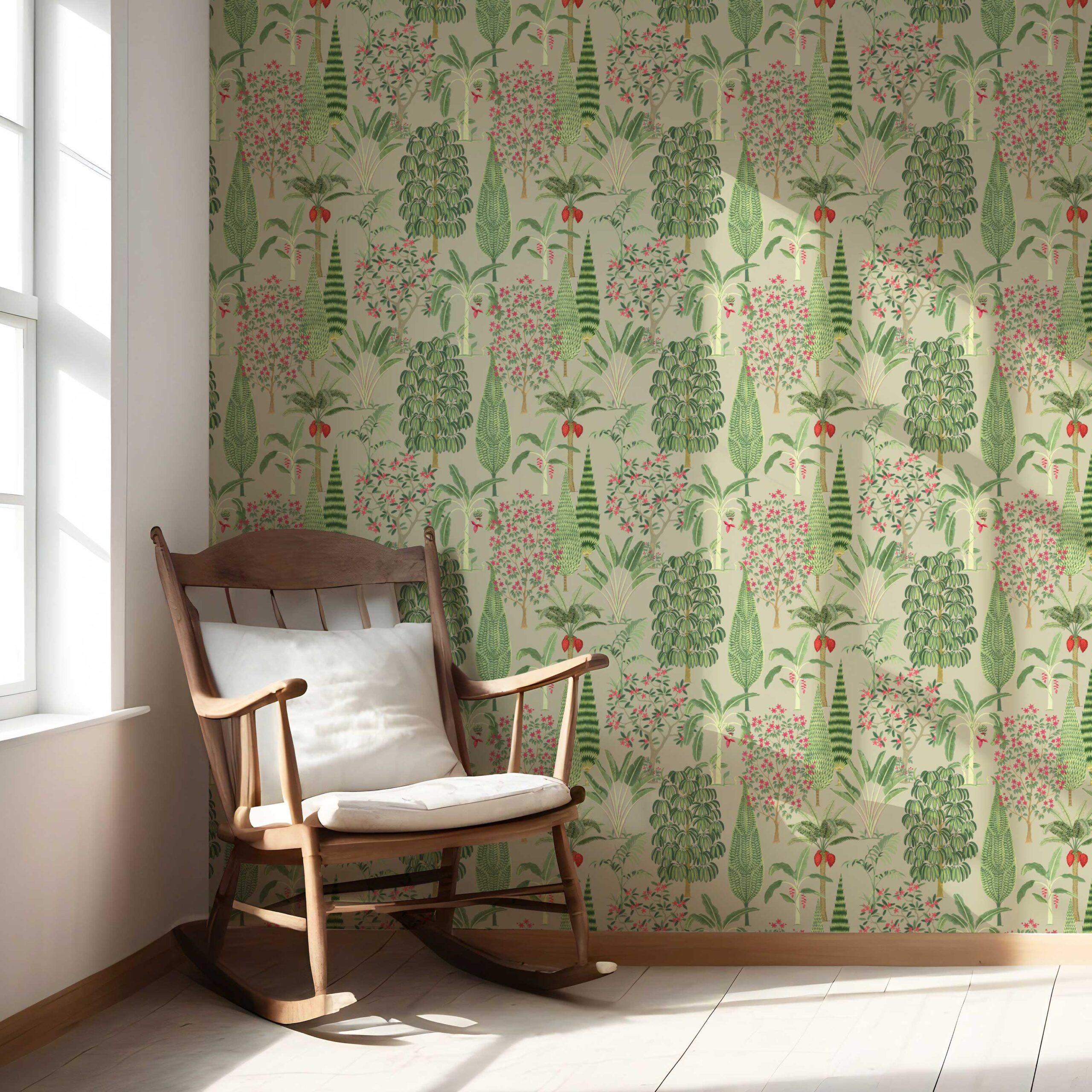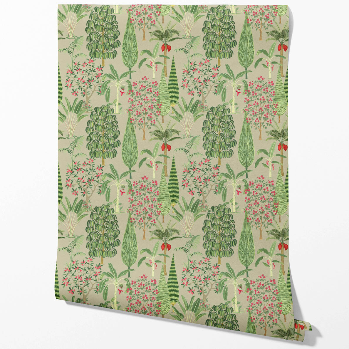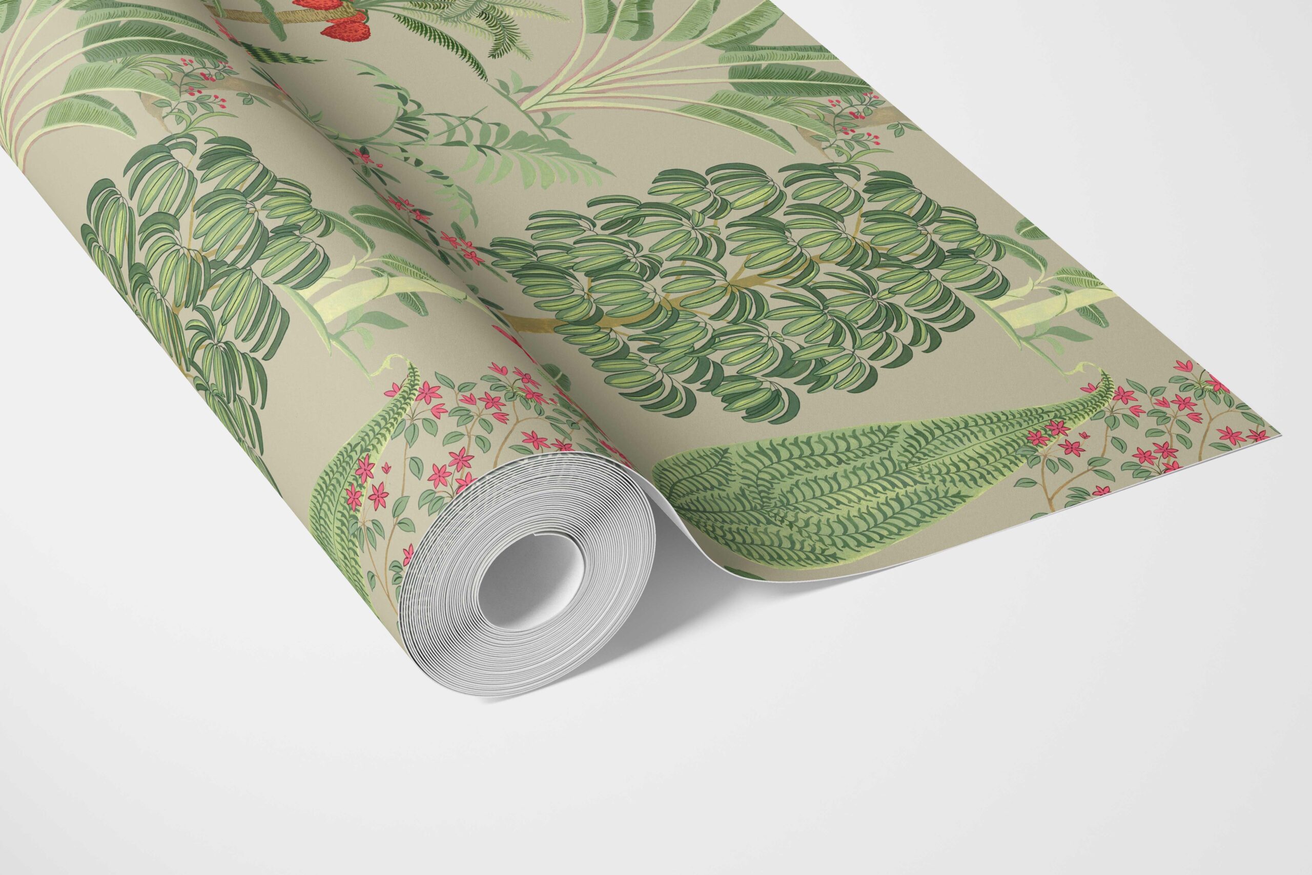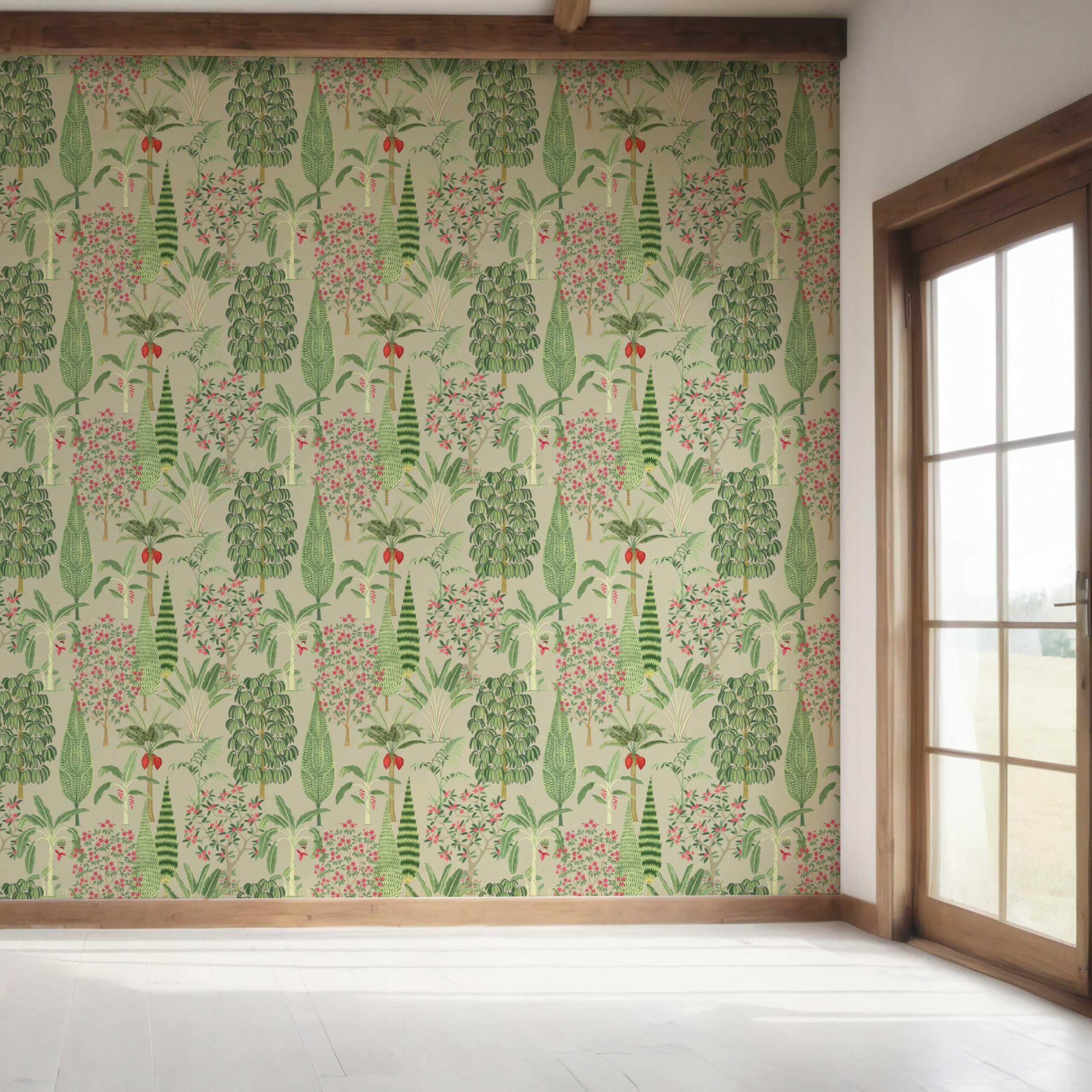 ‘Mazus’ Tropical Floral/ Botanical Wallpaper (Green/ Pink/ Red)