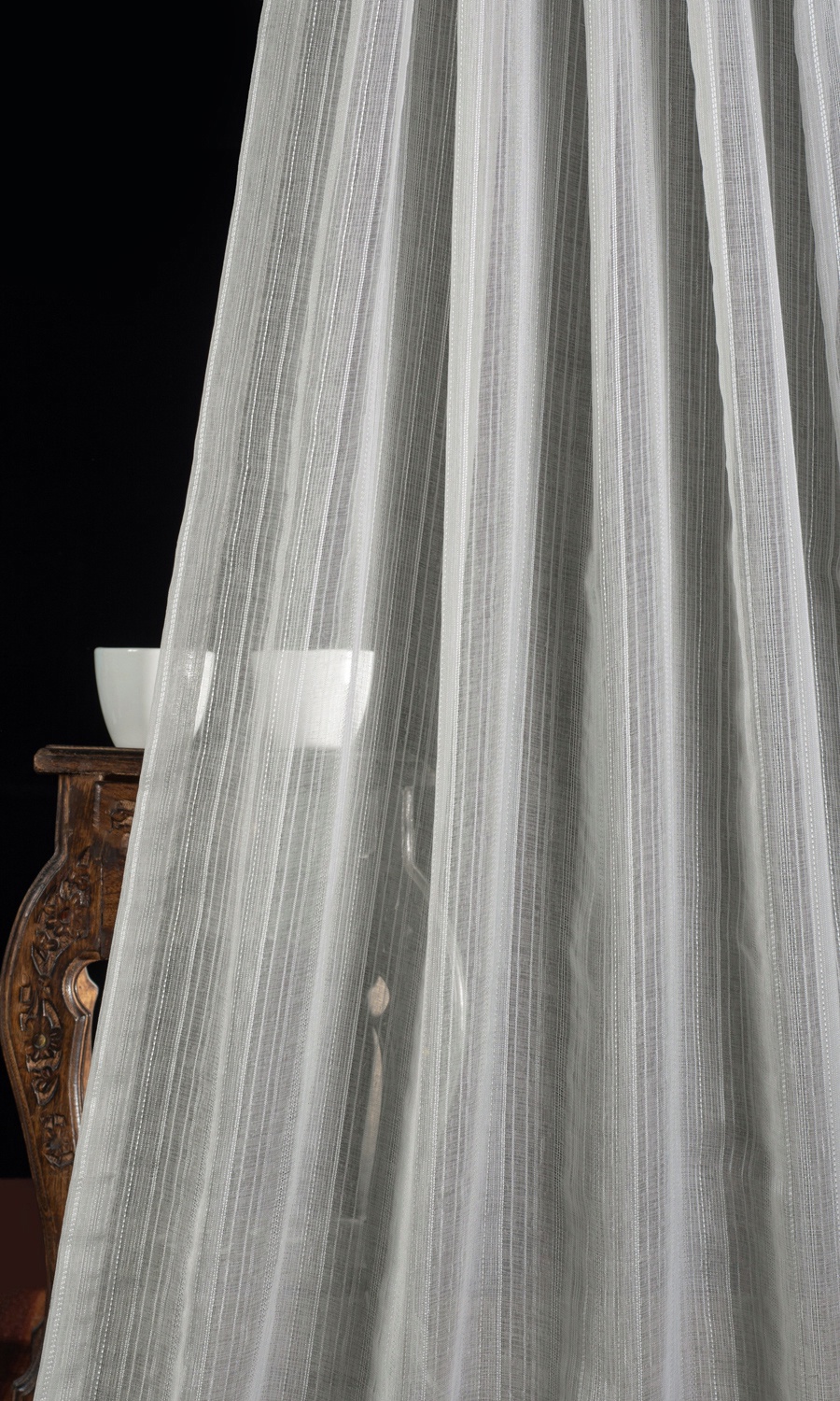 The most striking aspects of a decor style are sometimes conveyed through the subtlest detail, as in the textured weave of this sheer that hides a delicate stripe pattern. Airing a minimalist aesthetic with its woven striped pattern and a neutral palette of grey, ‘Antarctic Tern’ offers dreamy elegance with a modern sophisticated edge. Keep your home bright and breathing with this sheer at your window, while guarding your privacy during the day.