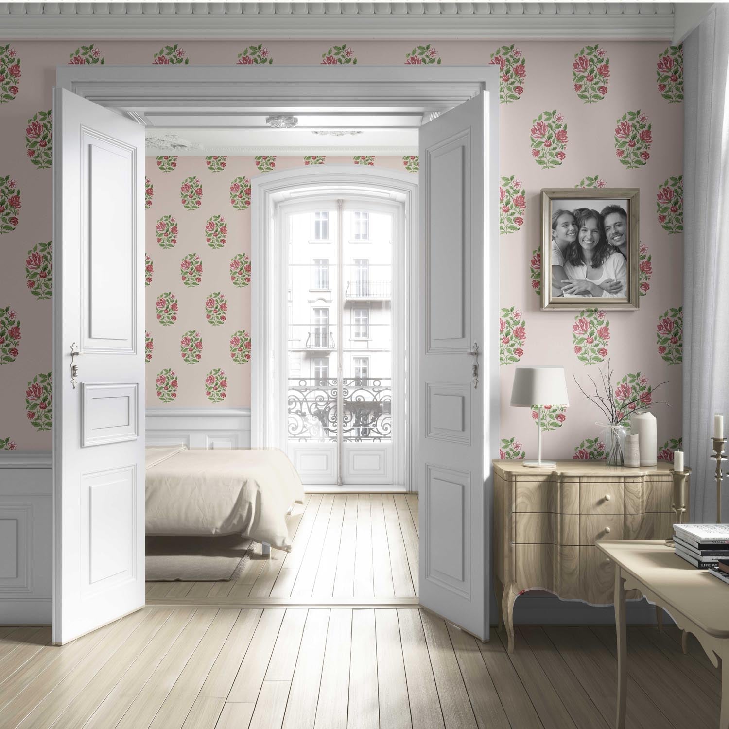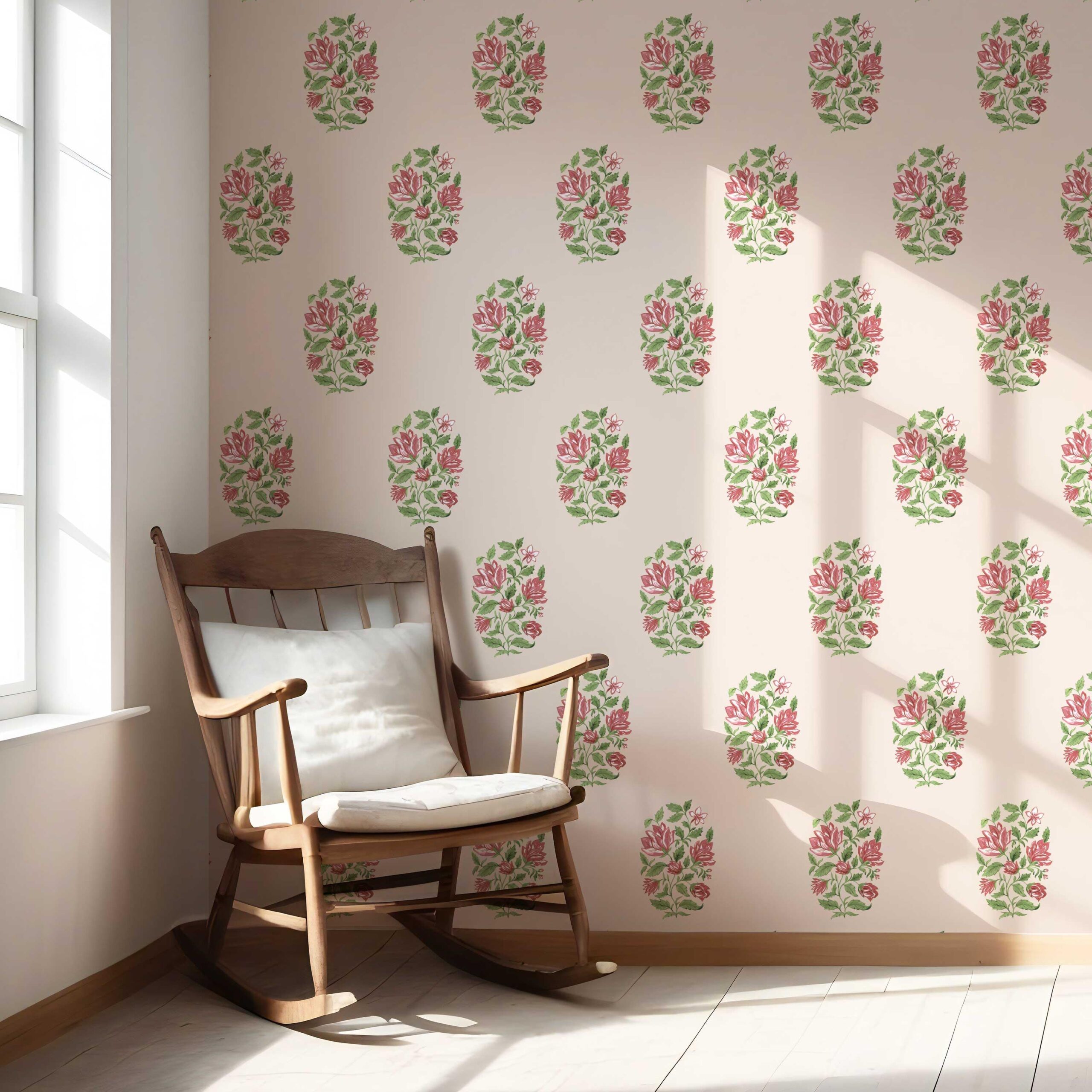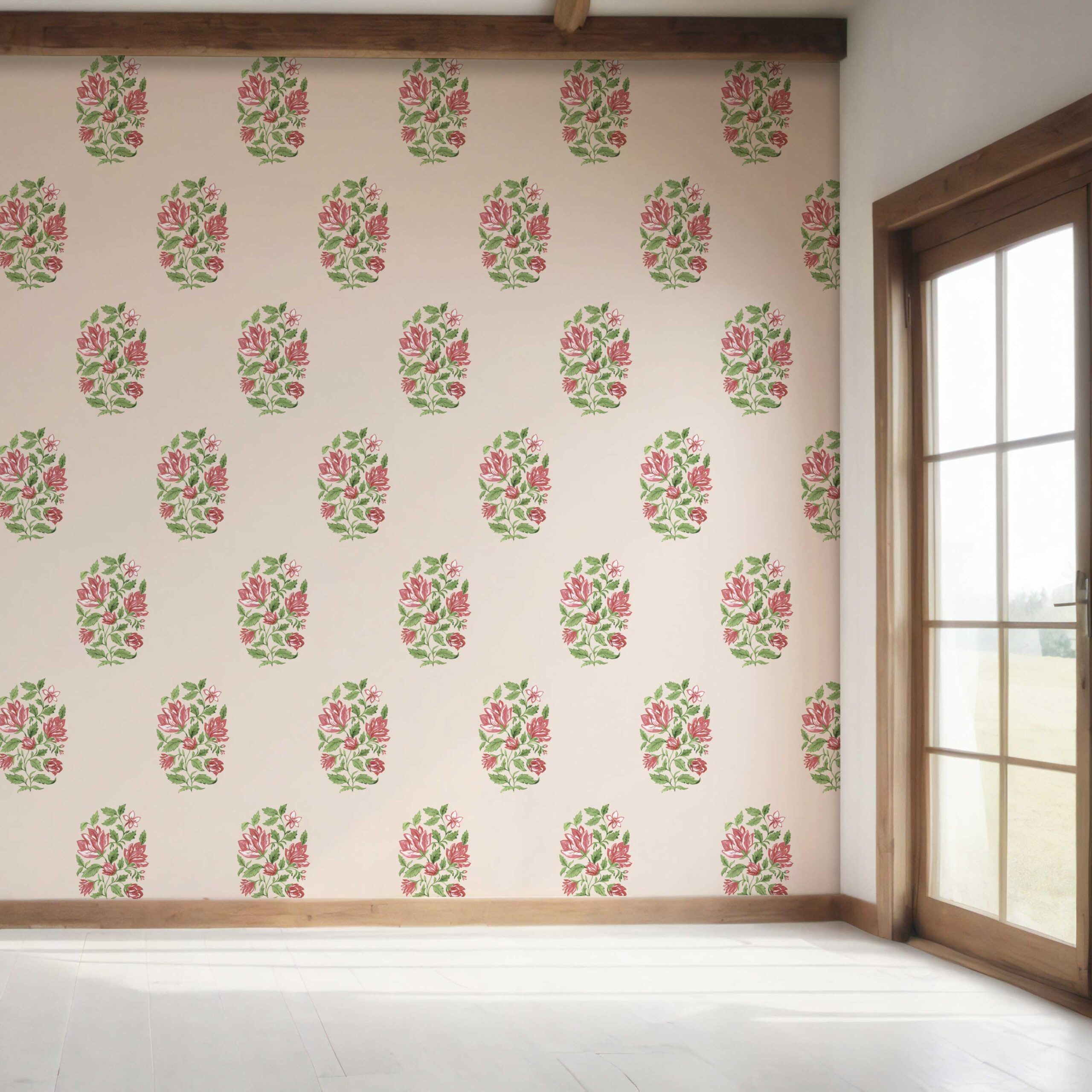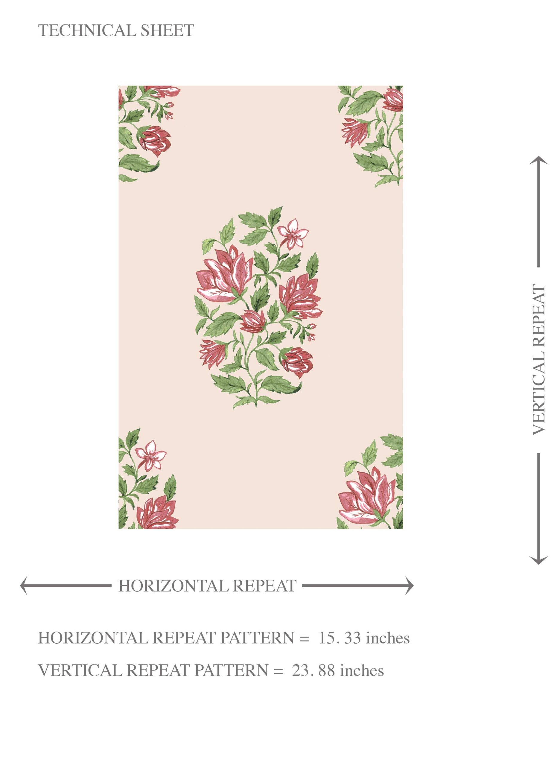 NON-PASTED: ‘Mezban’ is an unpasted wallpaper installed by applying adhesive paste (not provided by us, but easy to source) to the wall. While peel-and-stick papers do not leave much room to change the paper’s position once you start applying it, the traditional, non-pasted application is more forgiving, allowing for better positioning when matching patterns.