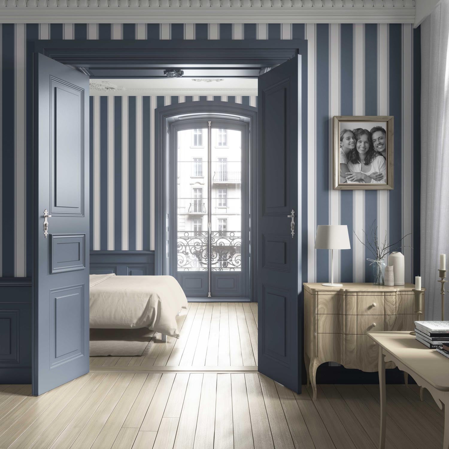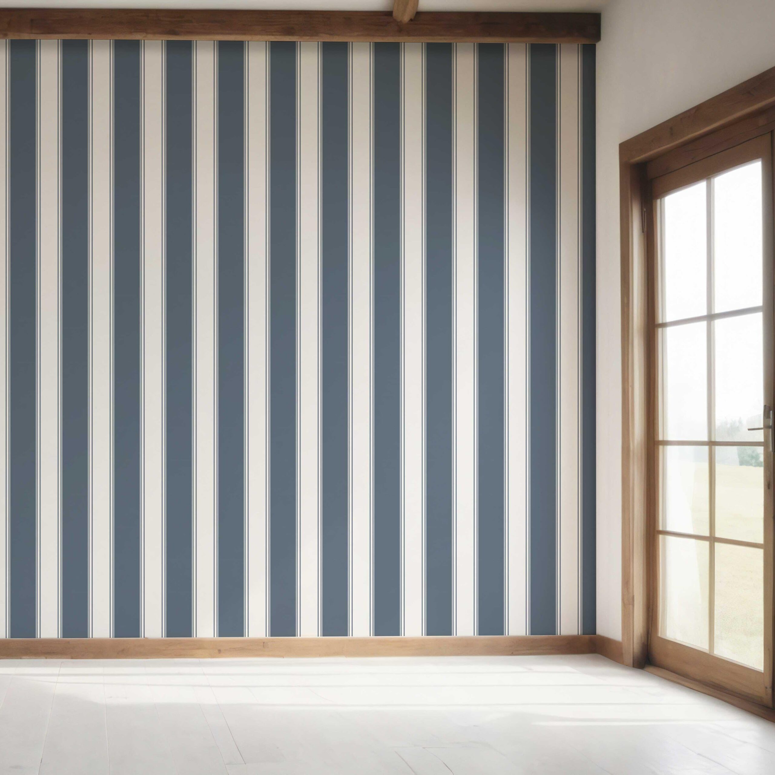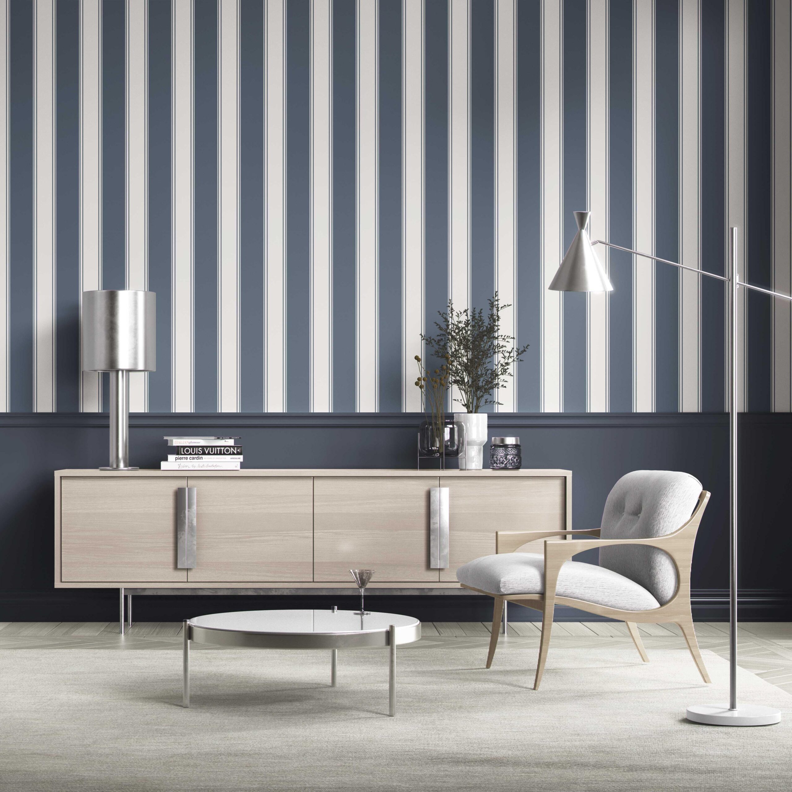 ‘Midnight Lamp’ Geometric Striped Wallpaper (Navy Blue)