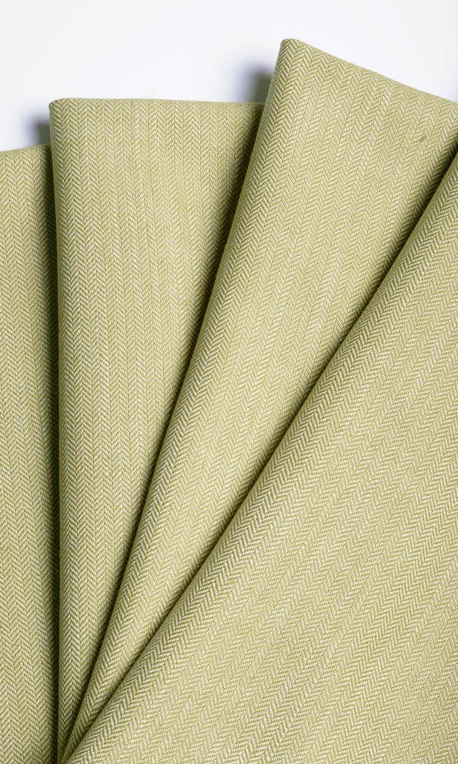 Nothing can bring freshness to the home as a dose of green. Window treatments in this lime green fabric can be a refreshing break for a bold palette and complementary to a pastel theme. The tactile, herringbone weave ensures a textural element to the solid palette. Styles that attract attention through their construction such as relaxed roman shades, pinch pleated drapes, and front-slatted shades can help to make the most of this drapery fabric.