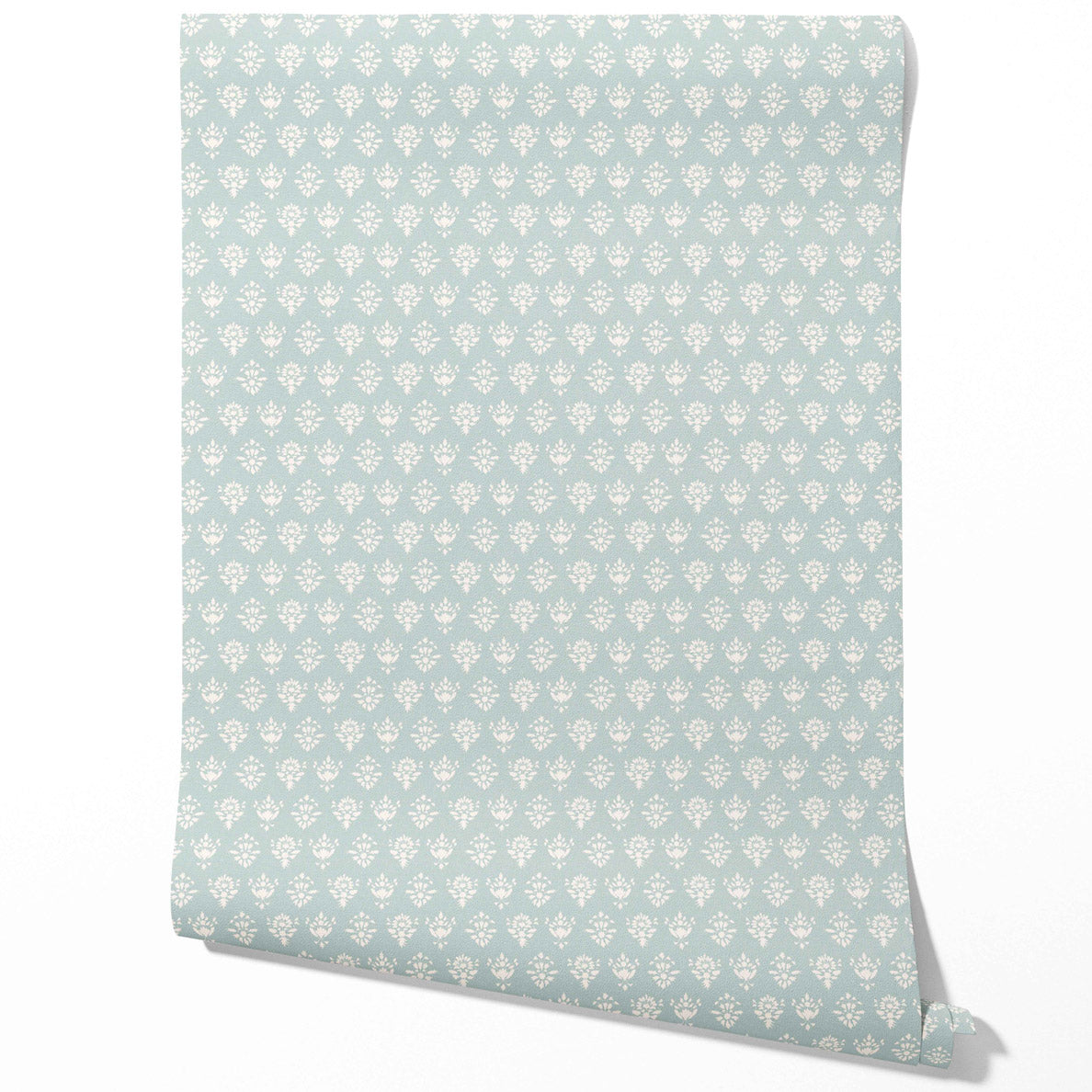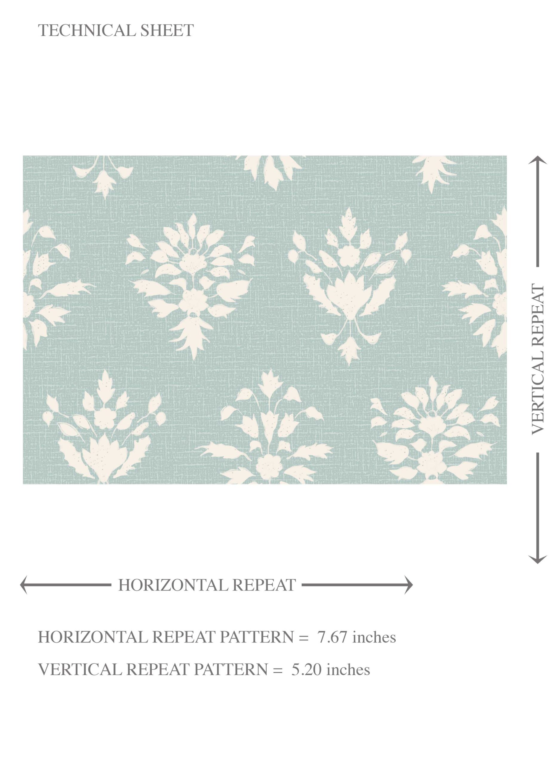 NON-PASTED: ‘Minty Blooms’ is an unpasted wallpaper installed by applying adhesive paste (not provided by us, but easy to source) to the wall. While peel-and-stick papers do not leave much room to change the paper’s position once you start applying it, the traditional, non-pasted application is more forgiving, allowing for better positioning when matching patterns.