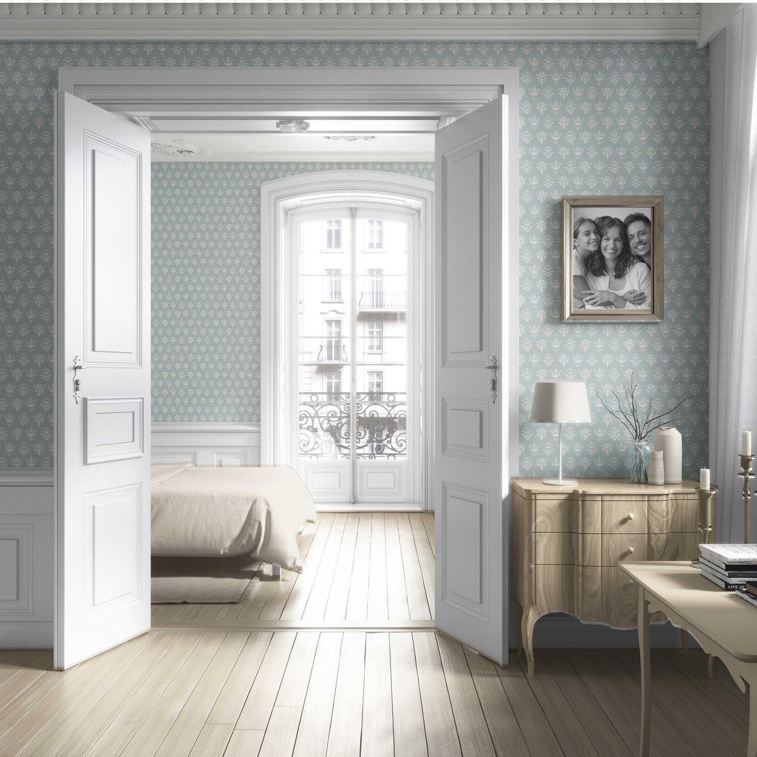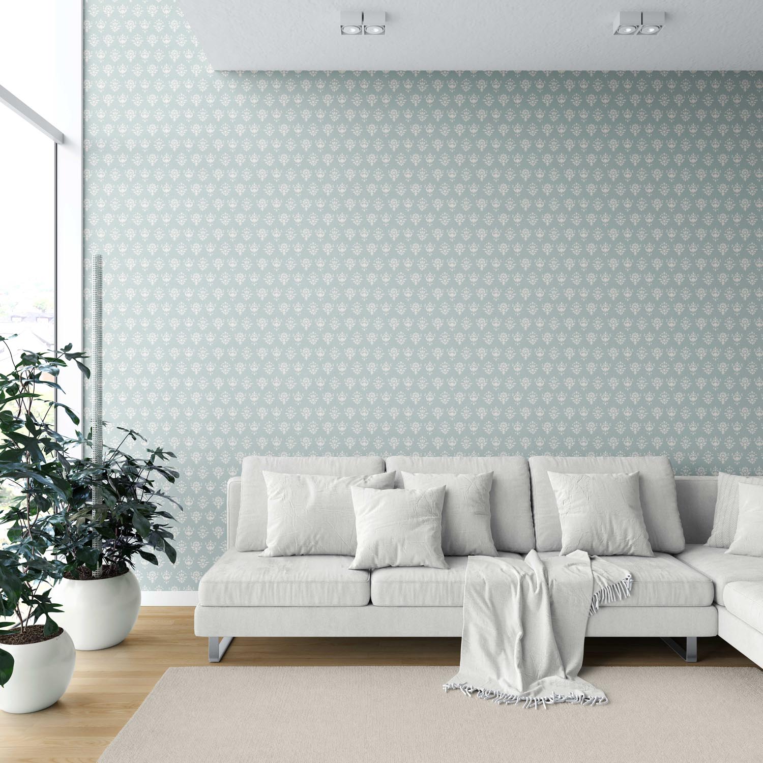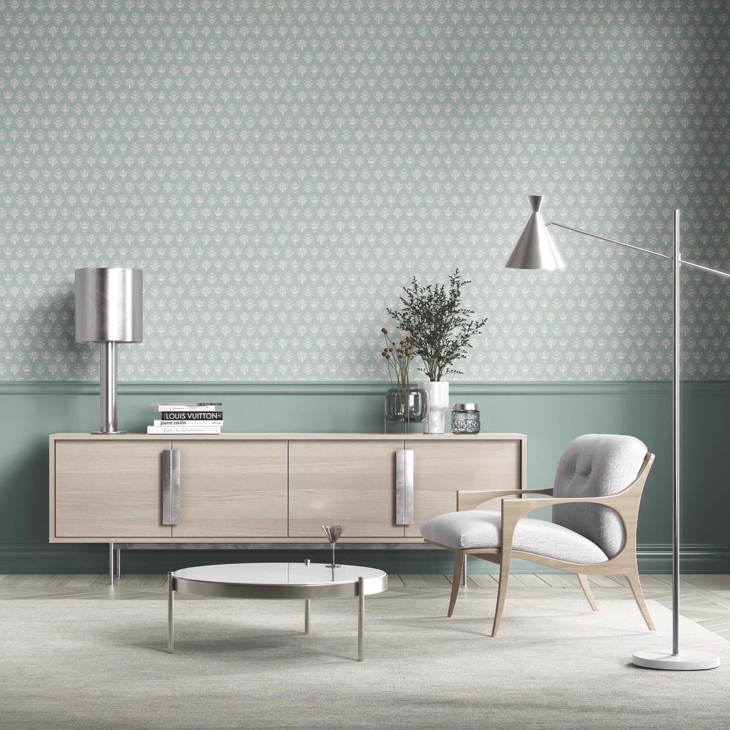 FINISH: ‘Minty Blooms’ is in a textile-inspired, feather-textured, matte-lustre finish, which feels luxurious to the touch. Designed to absorb rather than reflect light, it lends your walls a soft depth and a refined, high-end feel.