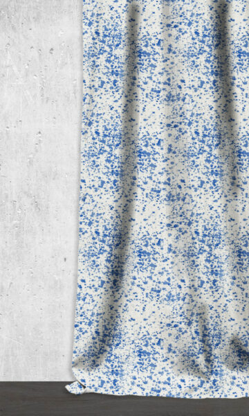 Featuring an abstract pattern that’s reminiscent of paint splatters on a fresh canvas. Its shades of eggshell and blue will brighten any room with their characteristic cheer. We especially love this distinctive fabric for a little boy’s playroom or bedroom!