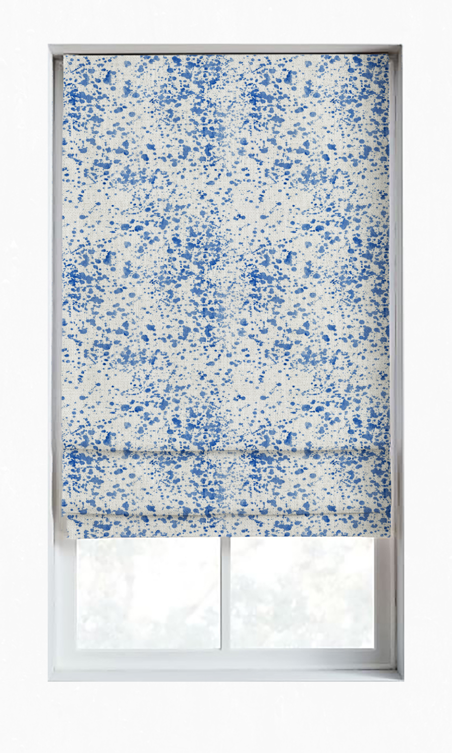 Featuring an abstract pattern that’s reminiscent of paint splatters on a fresh canvas. Its shades of eggshell and blue will brighten any room with their characteristic cheer. We especially love this distinctive fabric for a little boy’s playroom or bedroom!