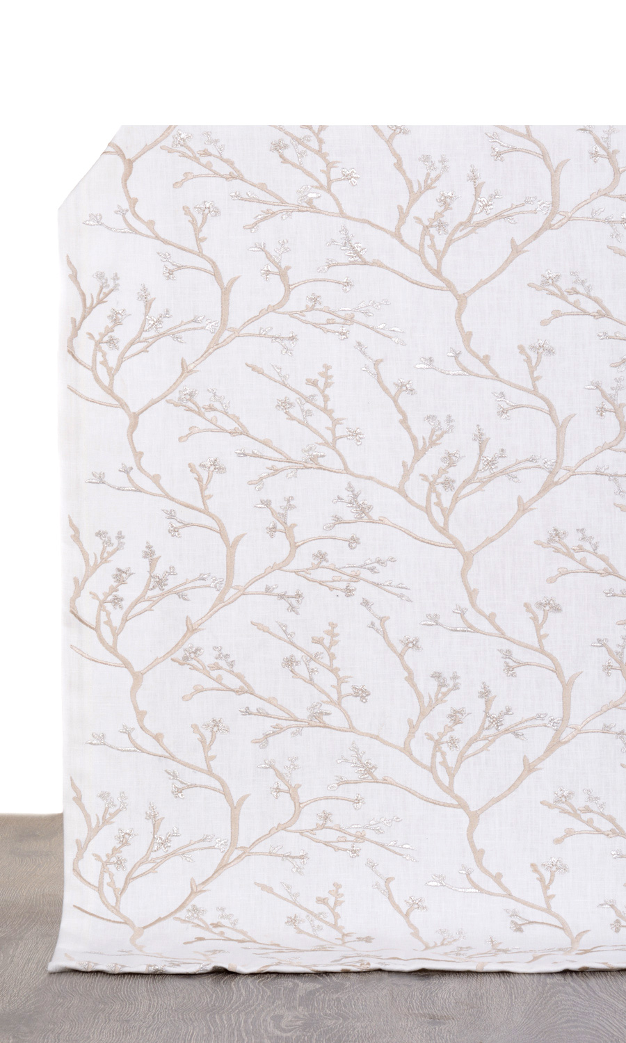 ‘Morlaix’ Floral Vine Print Embroidery Custom Drapes (White/ Beige)
