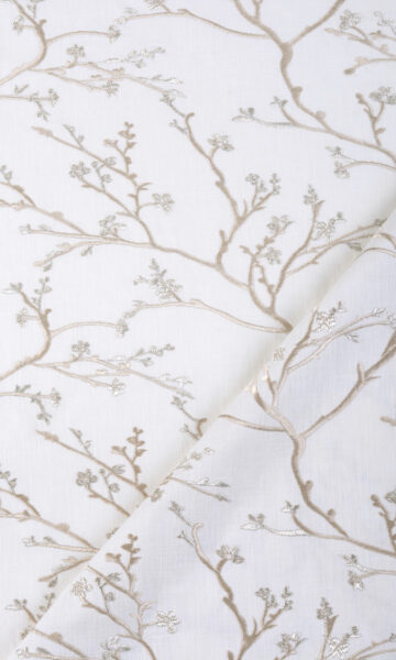Morlaix is for those who prefer a majestic touch in their interiors. The base ivory fabric is a beautiful blend of cotton, polyester and viscose that has been embroidered with an ornate floral vine pattern in pale beige. Sophisticated with just a hint of sumptuousness, this fabric works well for formal spaces.