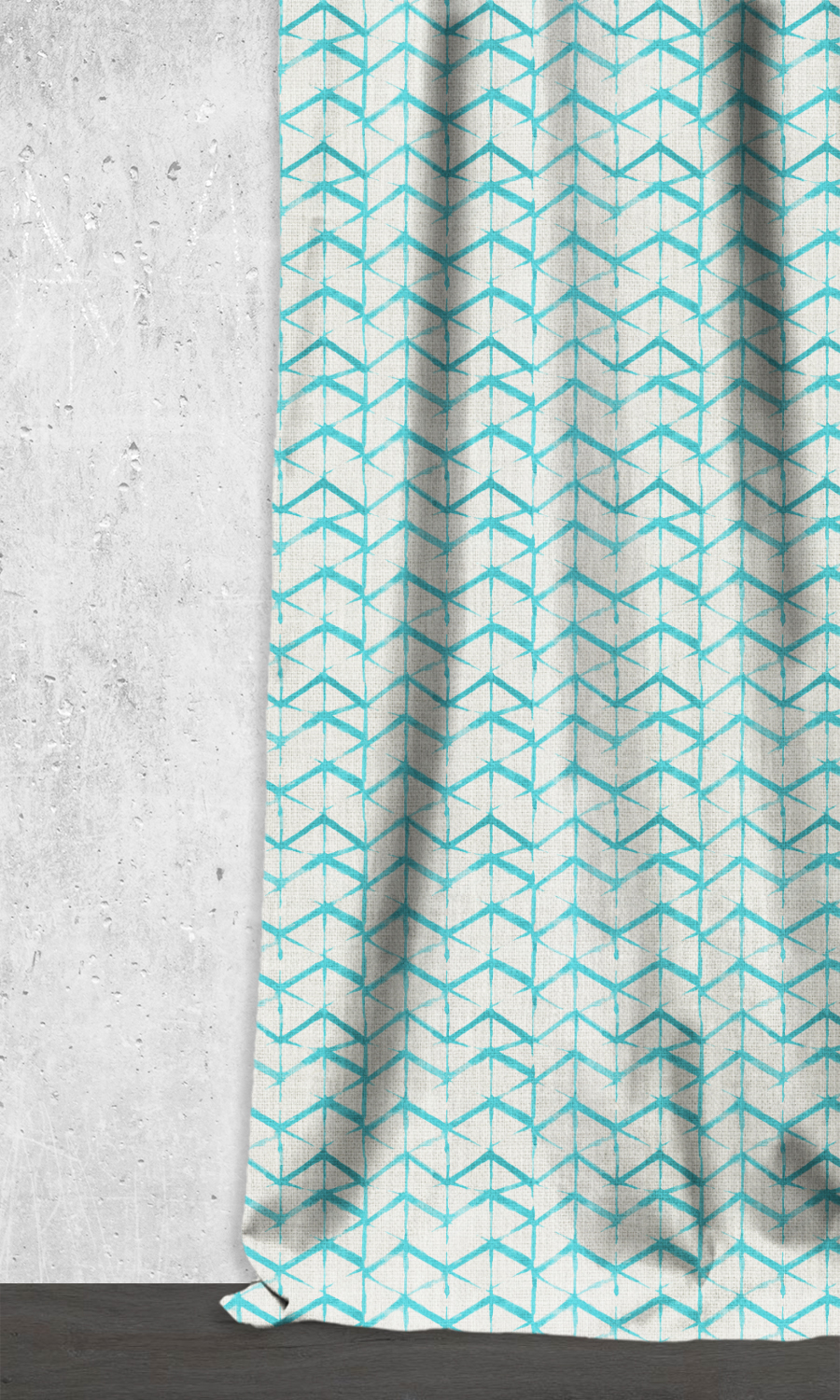 Featuring a clean, geo-inspired look and crafted for lasting durability, this high-quality fabric features versatile shades of eggshell and turquoise. Its playful pattern and palette is especially perfect for bringing a bunch of cheer to nurseries and play rooms!