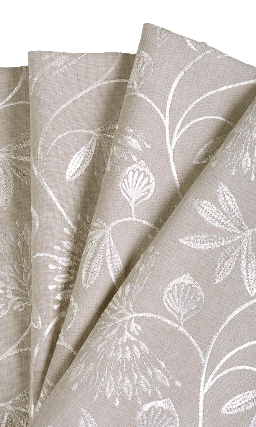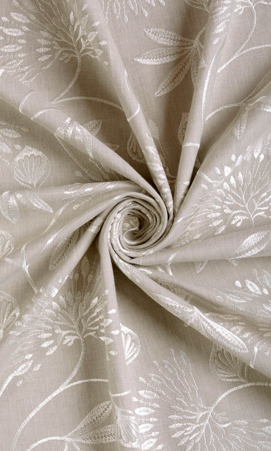 A fabric with a decidedly designer vibe with its rich finesse and fine embroidery. The base fabric is a rather neutral hue of a warm beige that’s covered all over with a stunning vine and flower motif worked in white thread. From afar, it looks like a wonderland full of frond look flowers and leaf motifs. This drapery fabric is perfect for creating an exclusive look.
