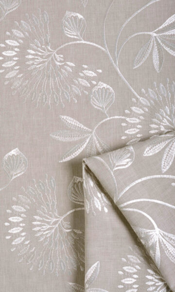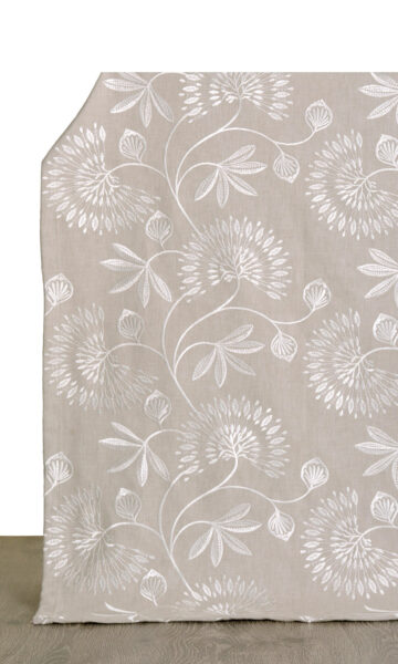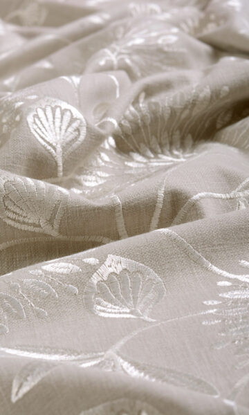 A fabric with a decidedly designer vibe with its rich finesse and fine embroidery. The base fabric is a rather neutral hue of a warm beige that’s covered all over with a stunning vine and flower motif worked in white thread. From afar, it looks like a wonderland full of frond look flowers and leaf motifs. This drapery fabric is perfect for creating an exclusive look.