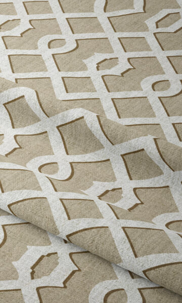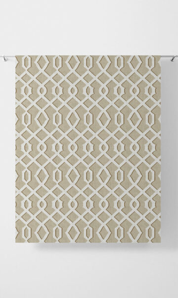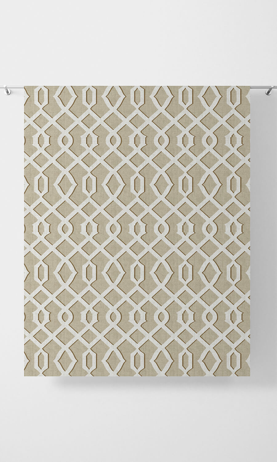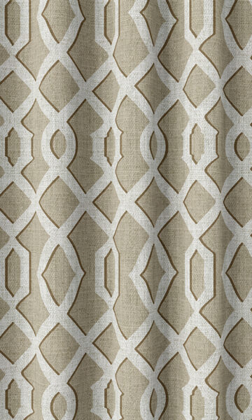 This beige and white fabric makes a beauteous presentation of the classic Moroccan trellis motif in a modern palette. The continuously flowing pattern that makes a pleasing meld of curvy shapes and straight lines is a visual treat and serves as a glad break among solid colored elements. The neutral color palette enables window treatments in this fabric to blend well with any interior design.