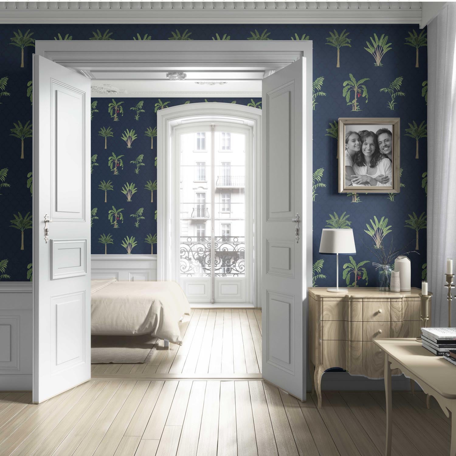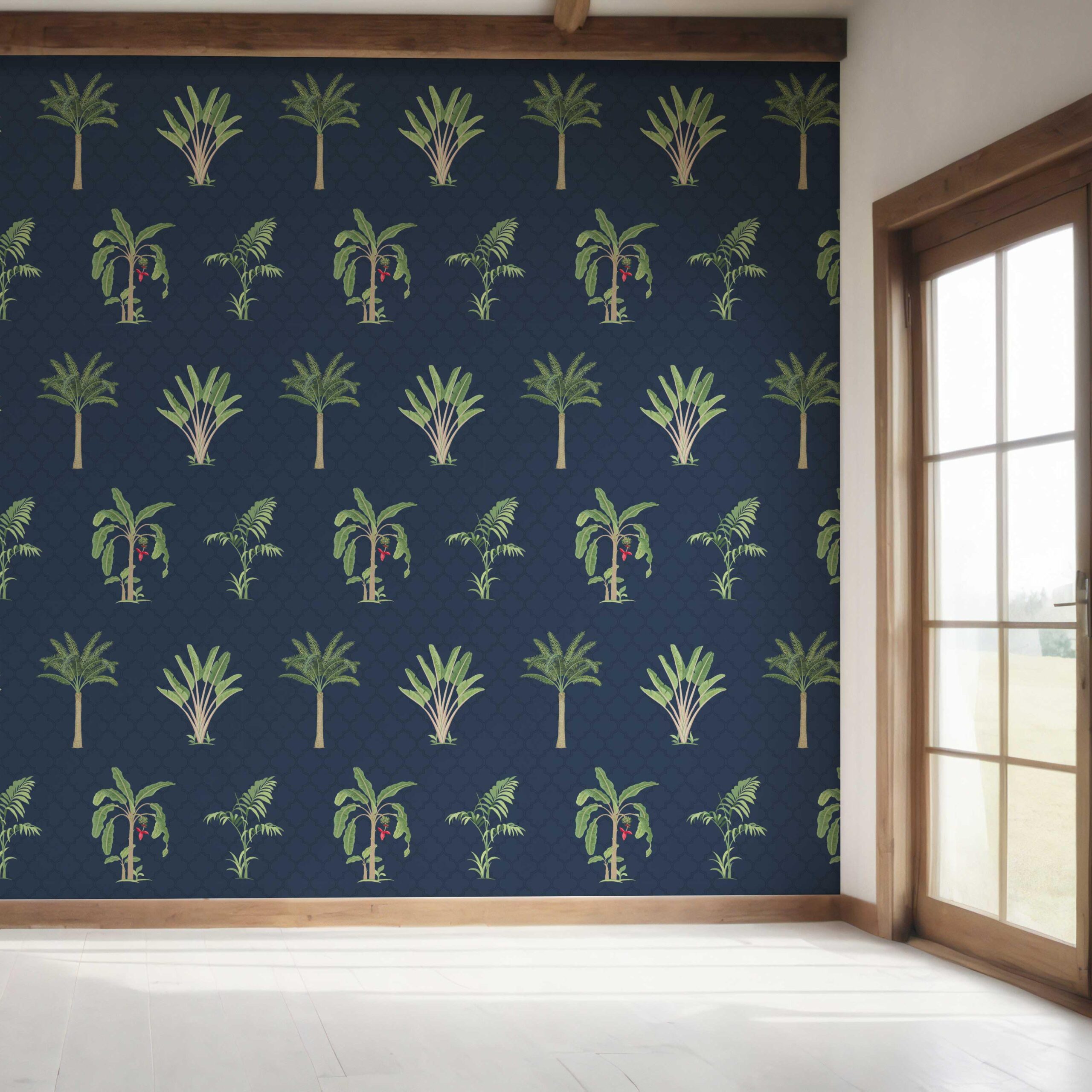 NON-PASTED: ‘Navala’ is an unpasted wallpaper installed by applying adhesive paste (not provided by us, but easy to source) to the wall. While peel-and-stick papers do not leave much room to change the paper’s position once you start applying it, the traditional, non-pasted application is more forgiving, allowing for better positioning when matching patterns.