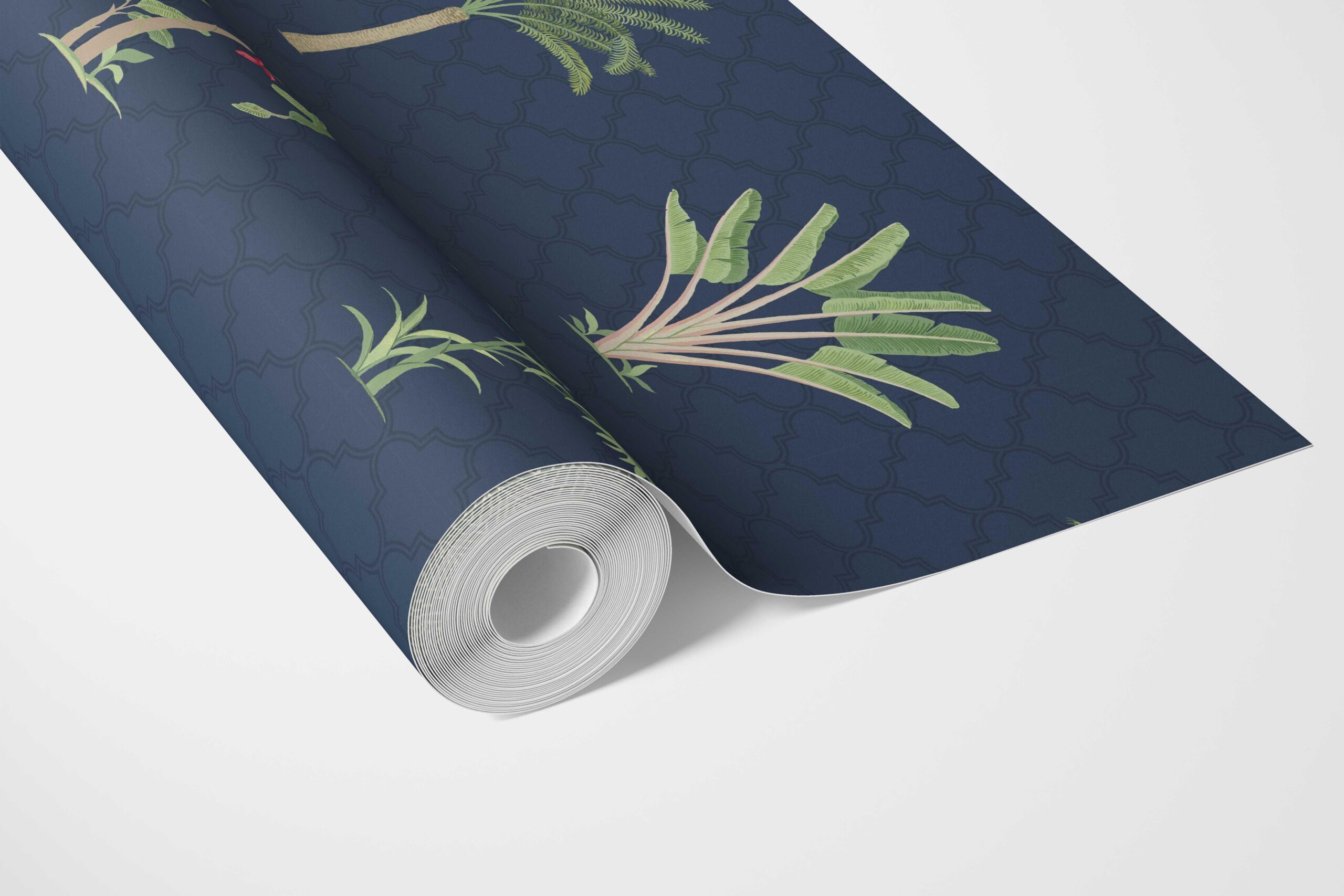 ‘Navala’ Botanical/ Floral Block Print Wallpaper (Navy Blue/ Green/ Red)